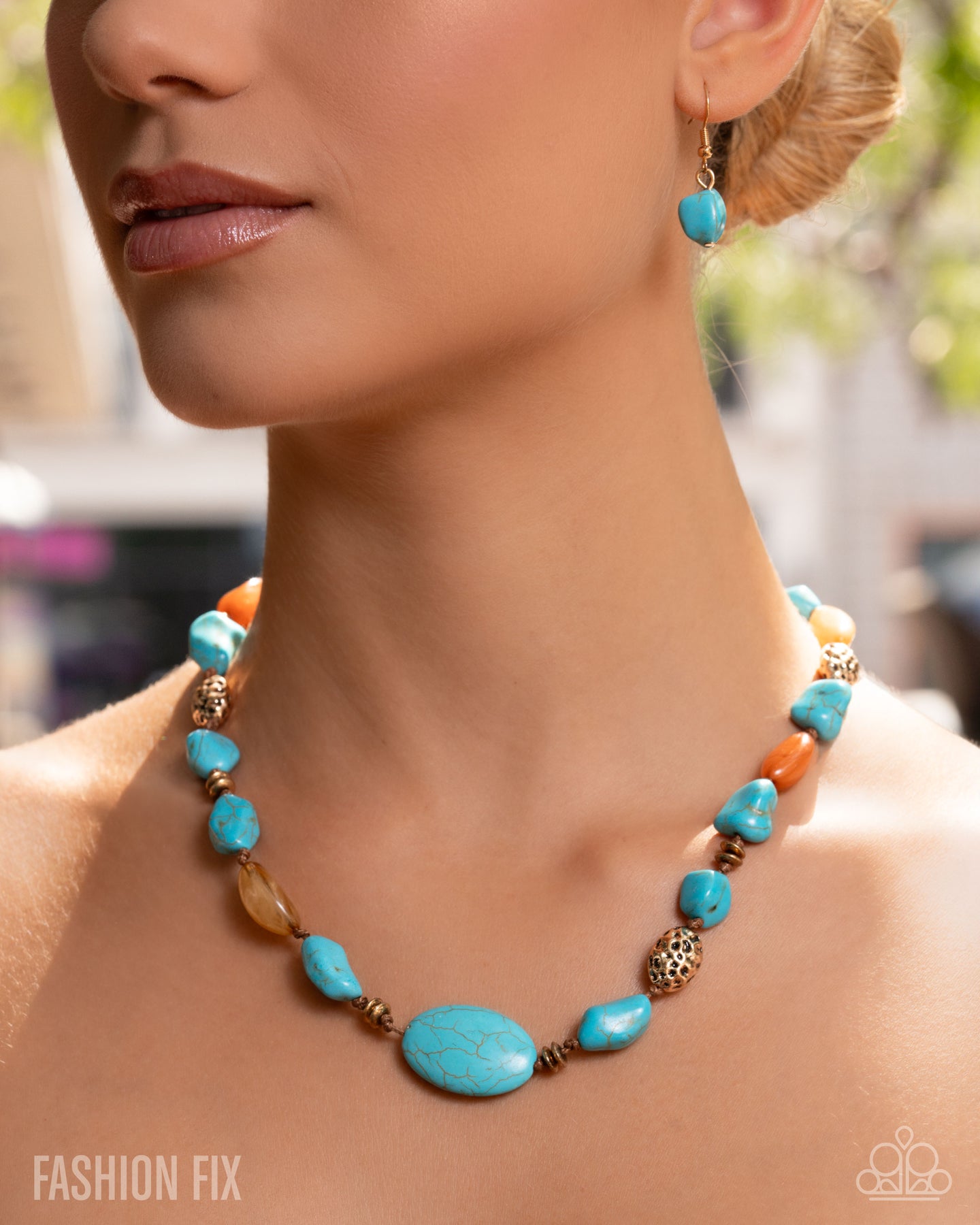 Elite Etiquette - Brass Multi Gem Long Necklace - Paparazzi #P2ST-BRXX-154XX