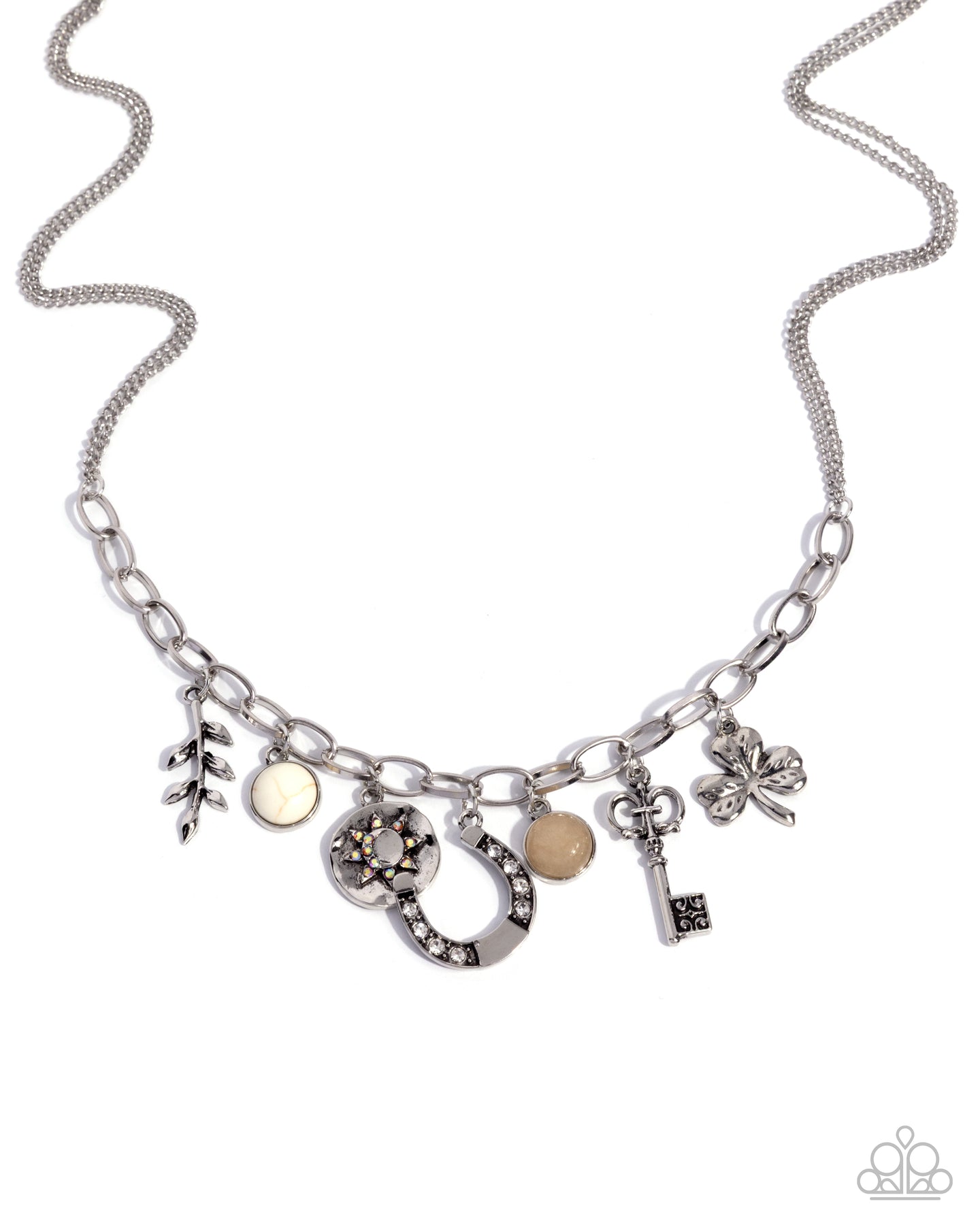 Western Window Shopping - White Stone Silver Charm Short Necklace - Paparazzi