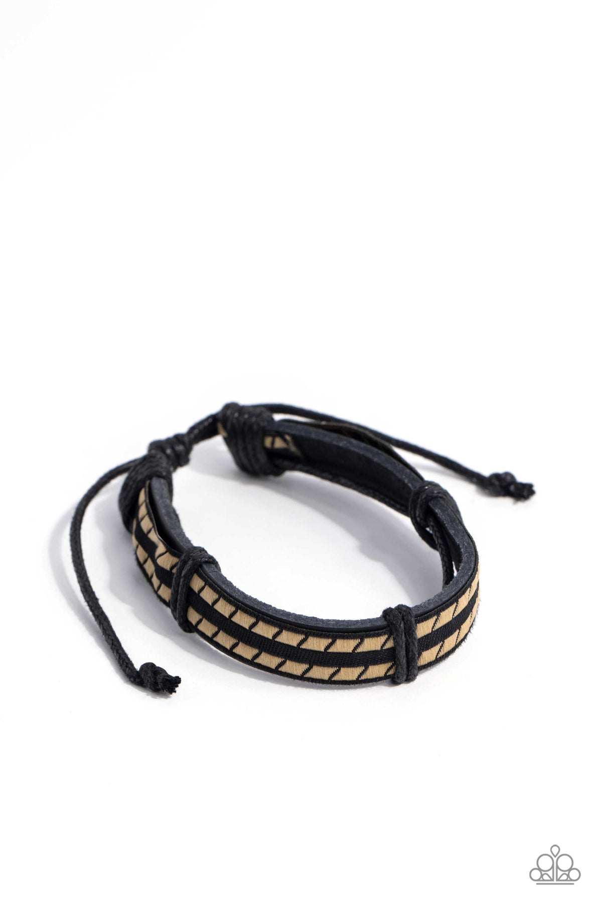 Alpine Apparel - Black and White Cord Leather Urban Slide Bracelet - Paparazzi