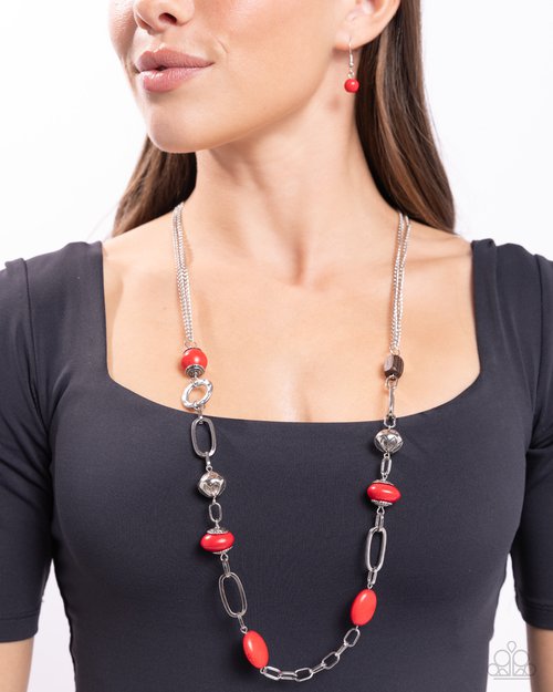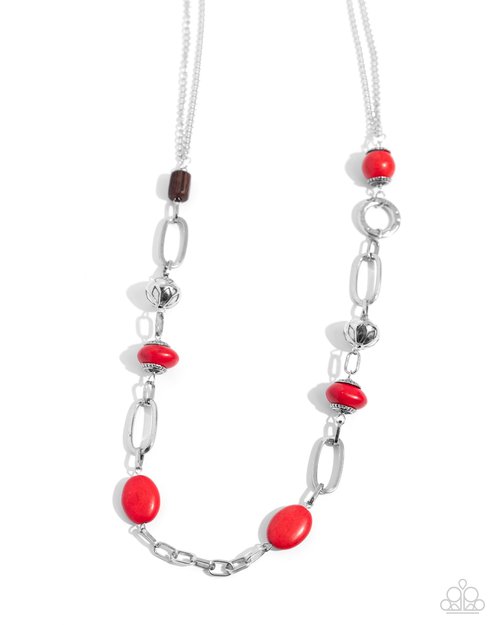 Barefoot Bohemian - Red Stone Silver Oval Long Necklace - Paparazzi #P2SE-RDXX-315XX