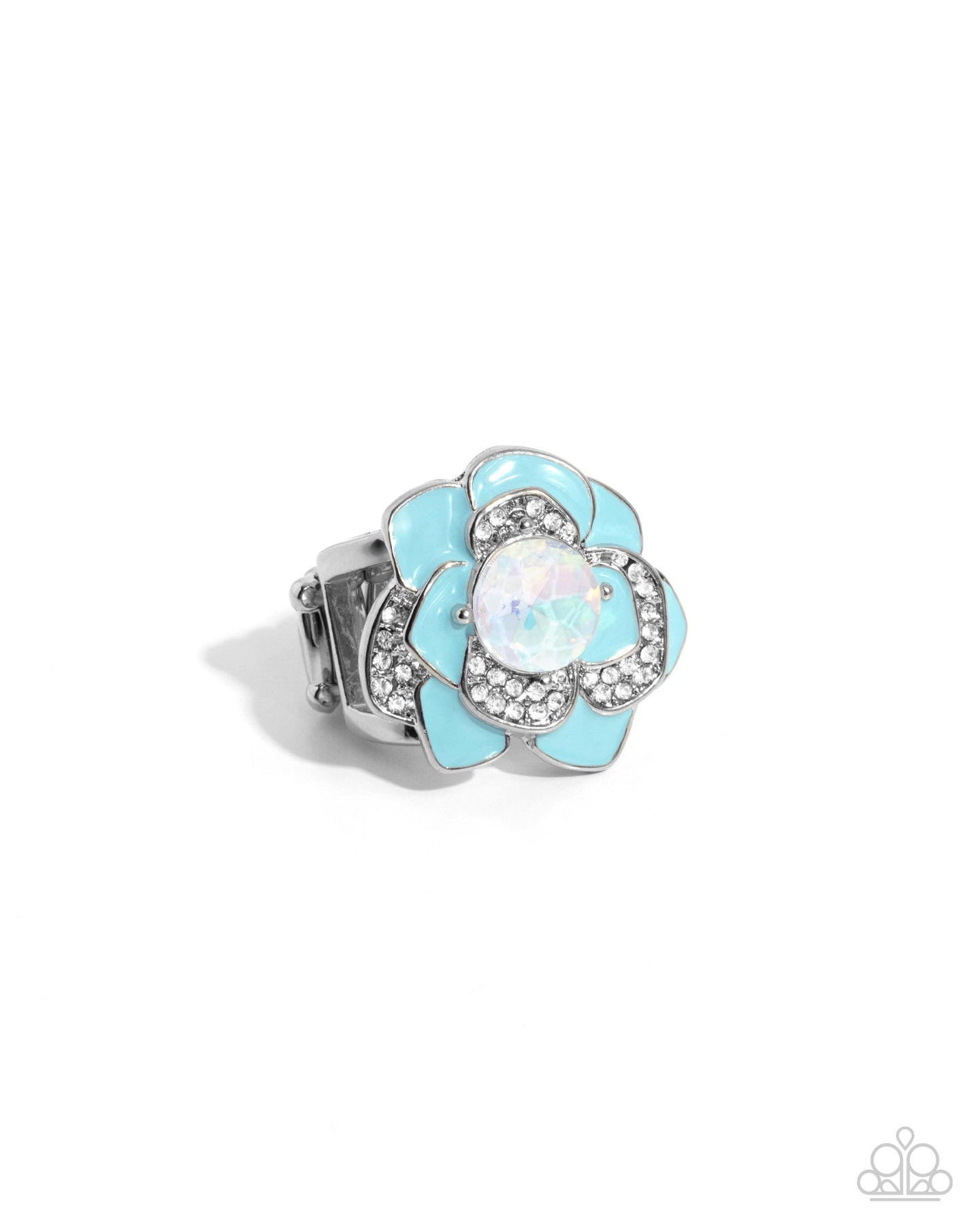 Bridging Bling - Blue Flower Iridescent Gem Silver Ring - Paparazzi