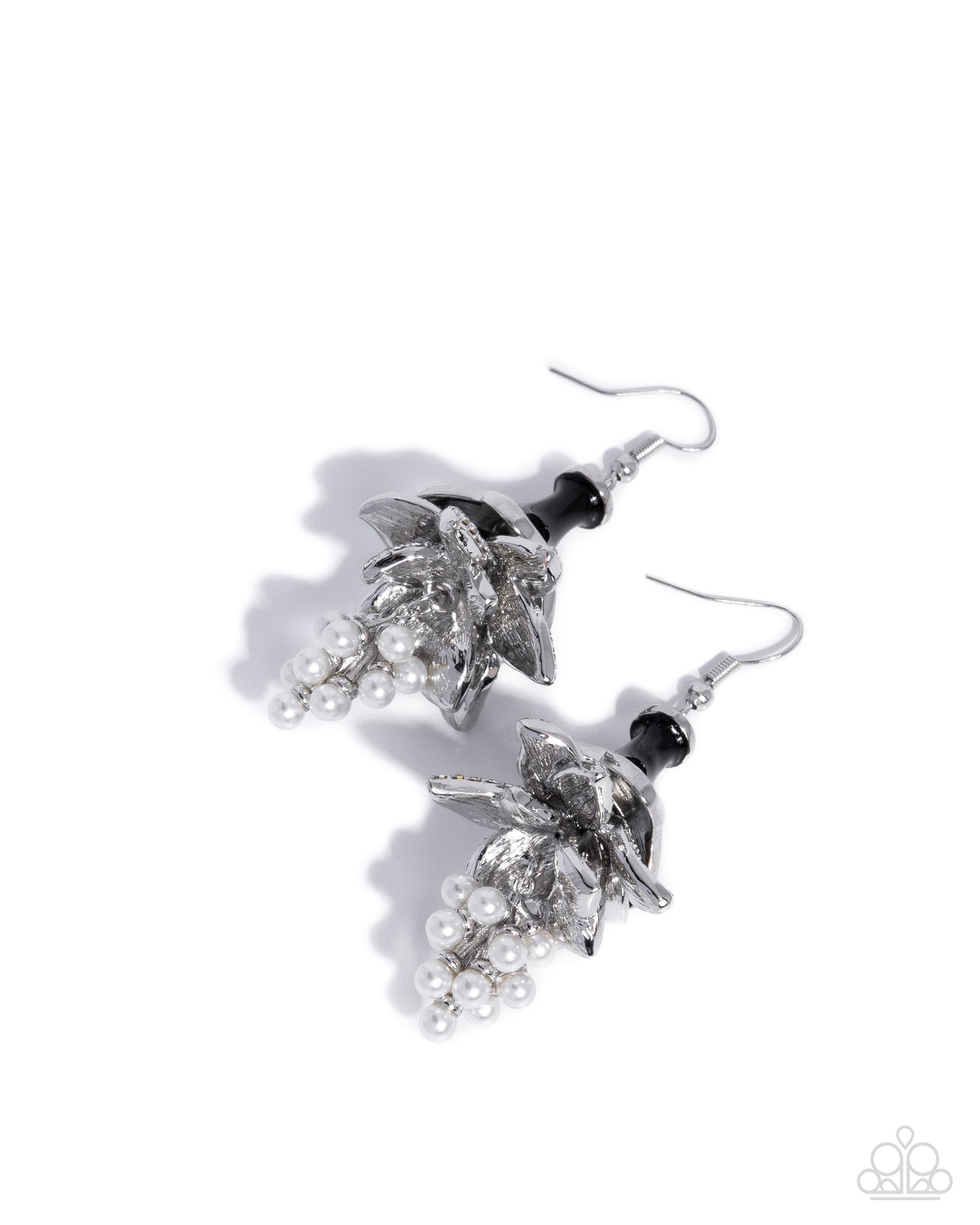 Brilliant Bells - Black Flower Silver Earrings - Paparazzi