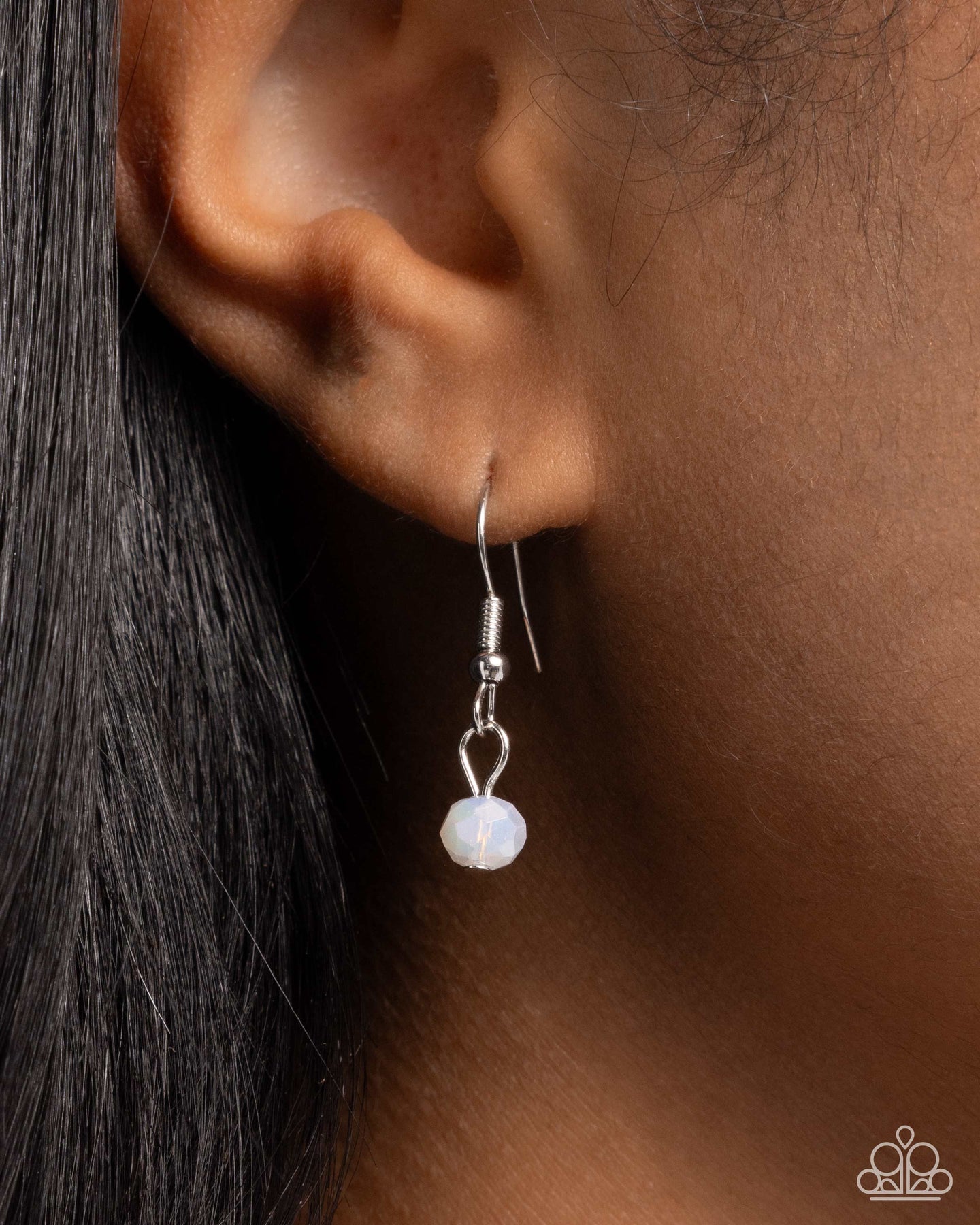 Eclectic Effort - White Stone Iridescent Seed Bead Silver Layered Short Necklace - Paparazzi