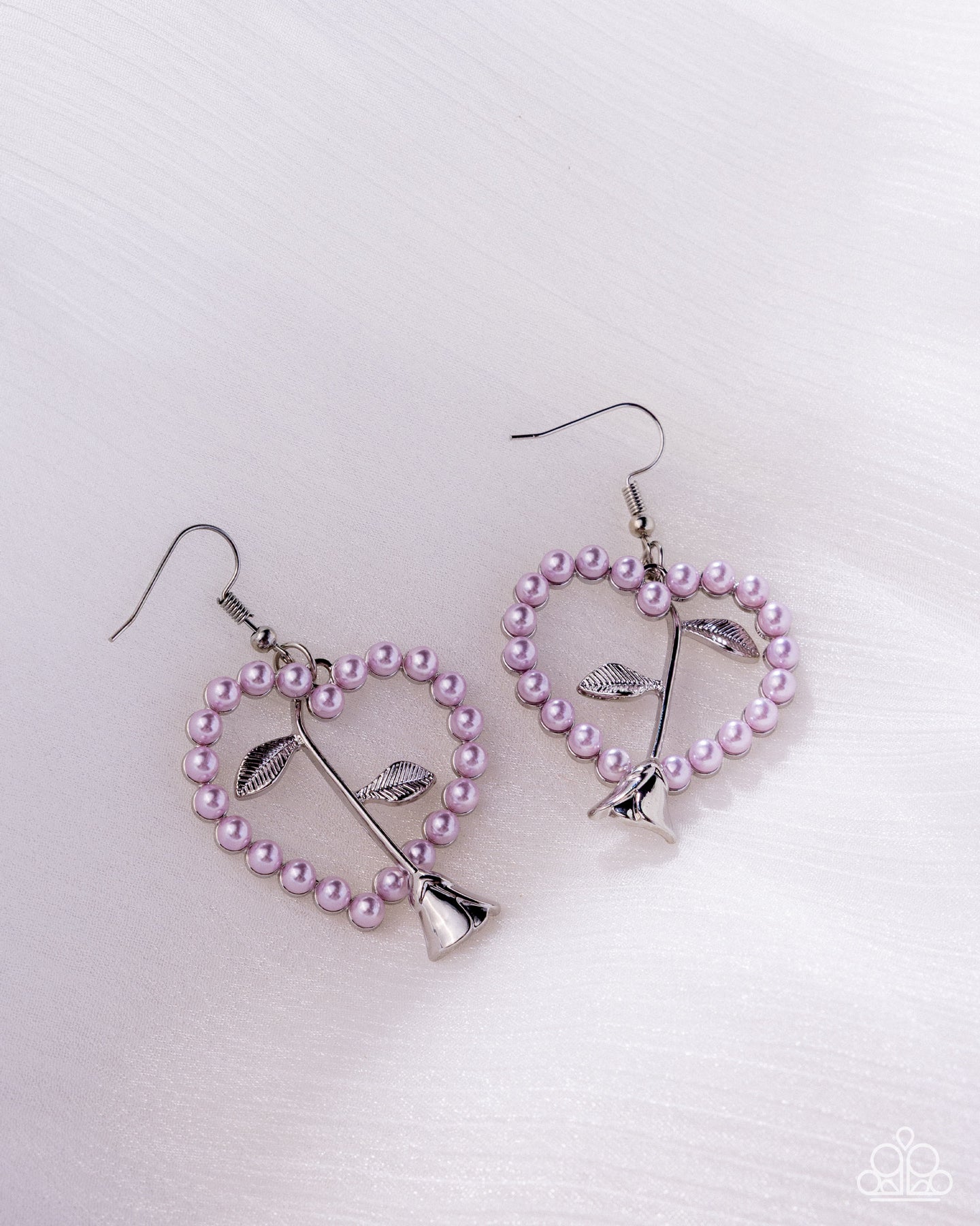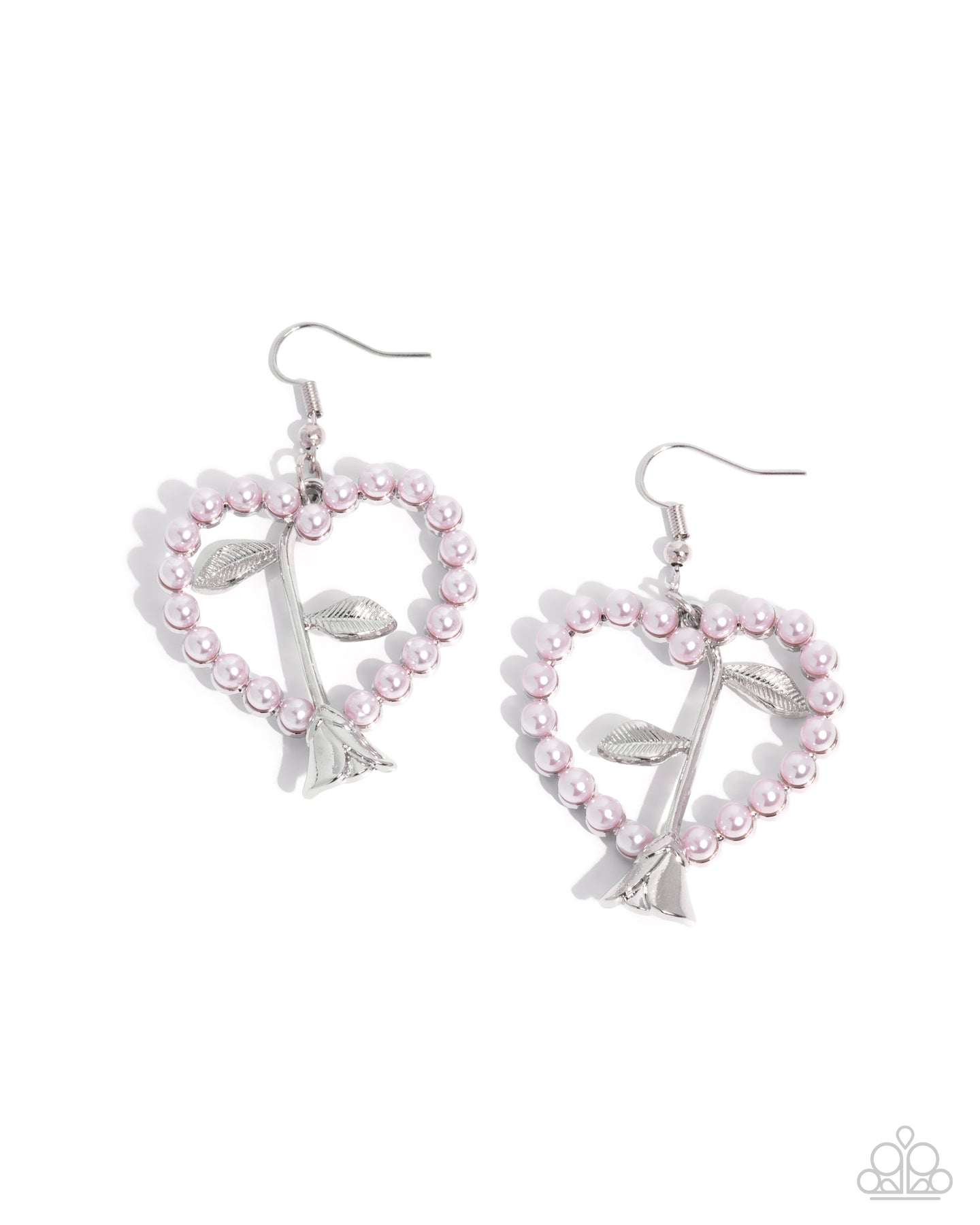 Feminine Fame - Pink Pearl Heart Silver Floral Earrings - Paparazzi