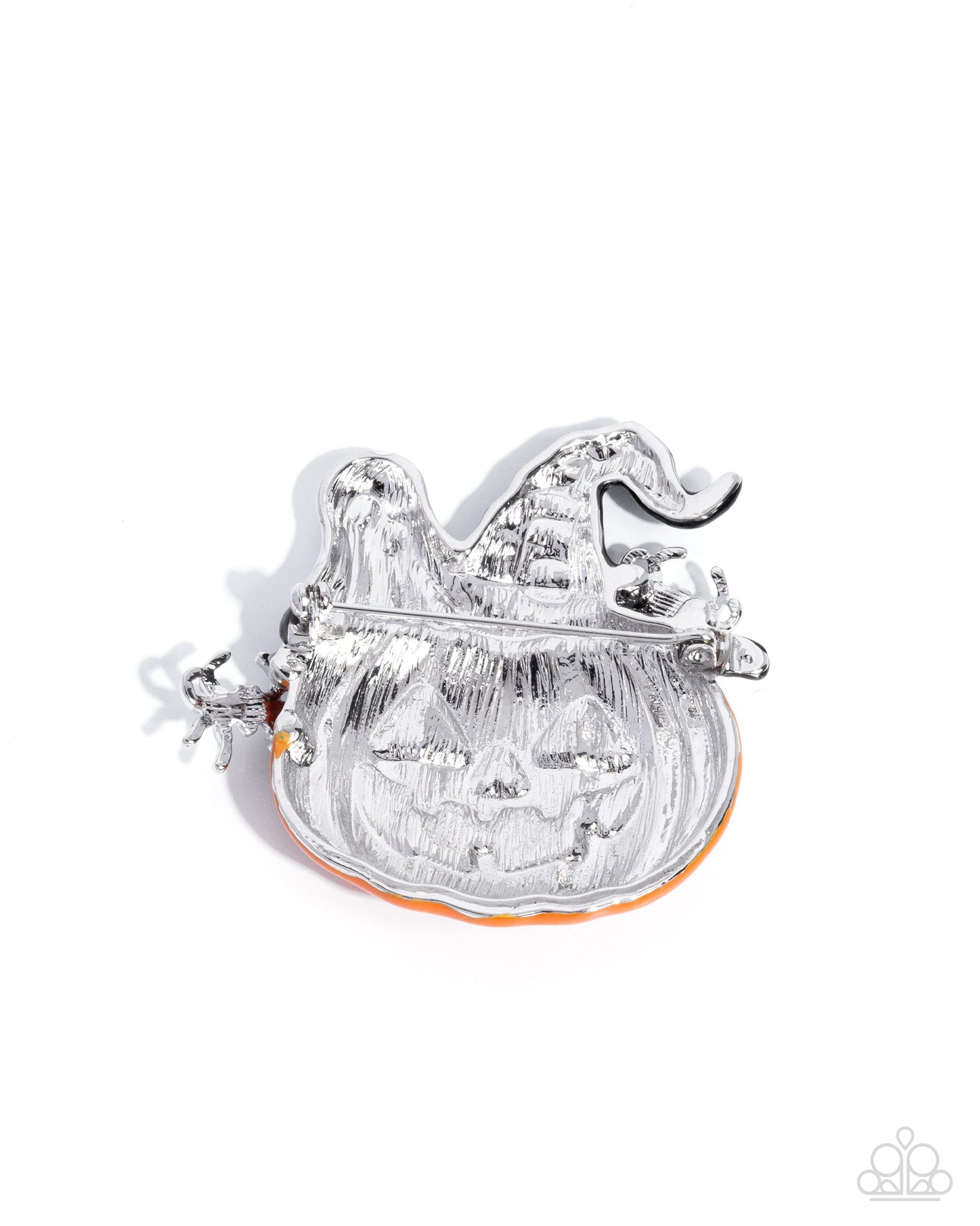 Historic Halloween - Orange Pumpkin Ghost Halloween Brooch - Paparazzi #P7BR-OGXX-021XX