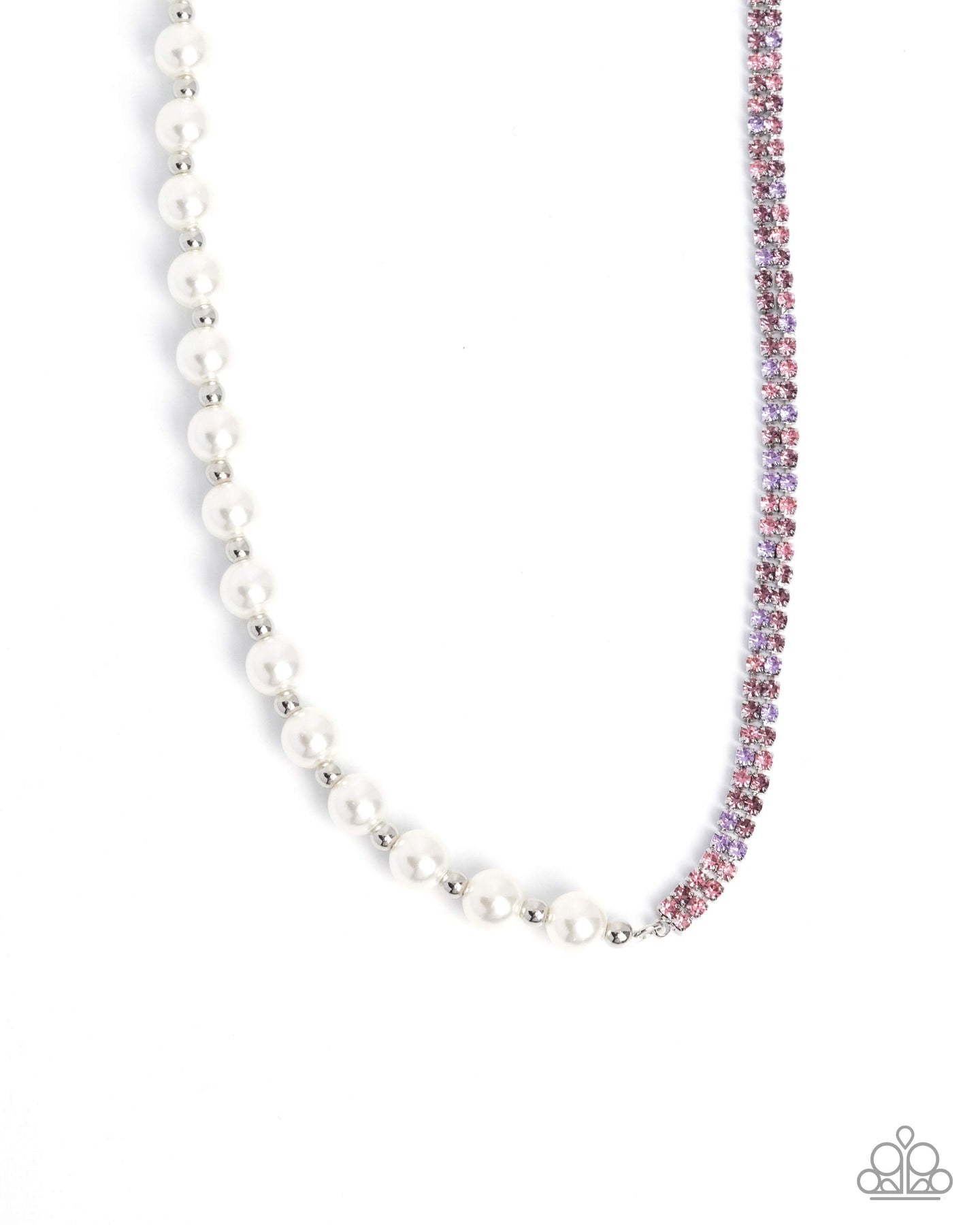 Promising Paradise - Purple Rhinestone White Pearl Short Necklace