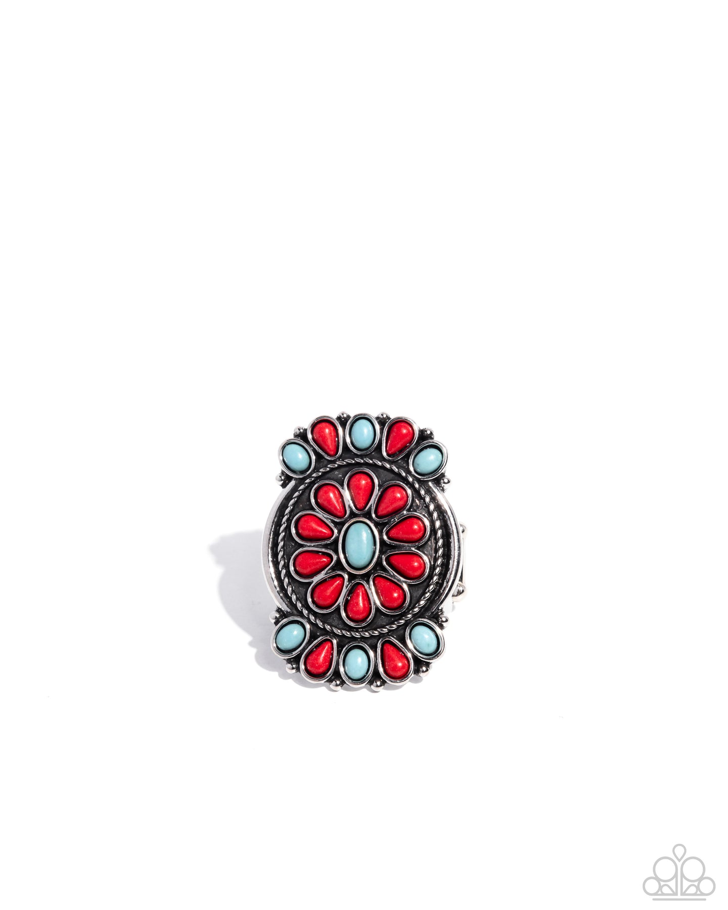 Tapestry Theme - Red and Turquoise Silver Ring - Paparazzi #P4SE-RDXX-190XX