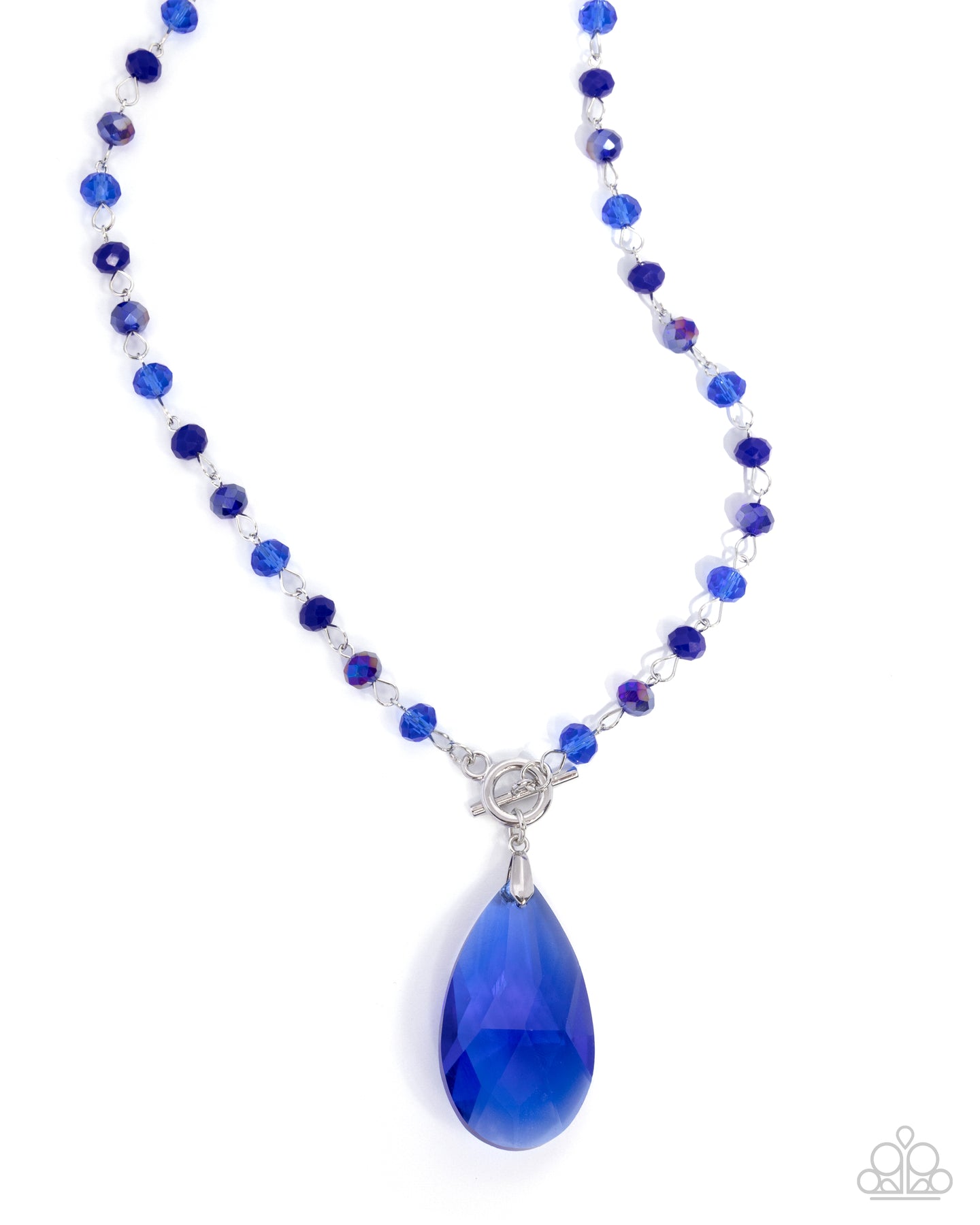 Teardrop Tale - Blue Gem Silver Toggle Short Necklace - Paparazzi