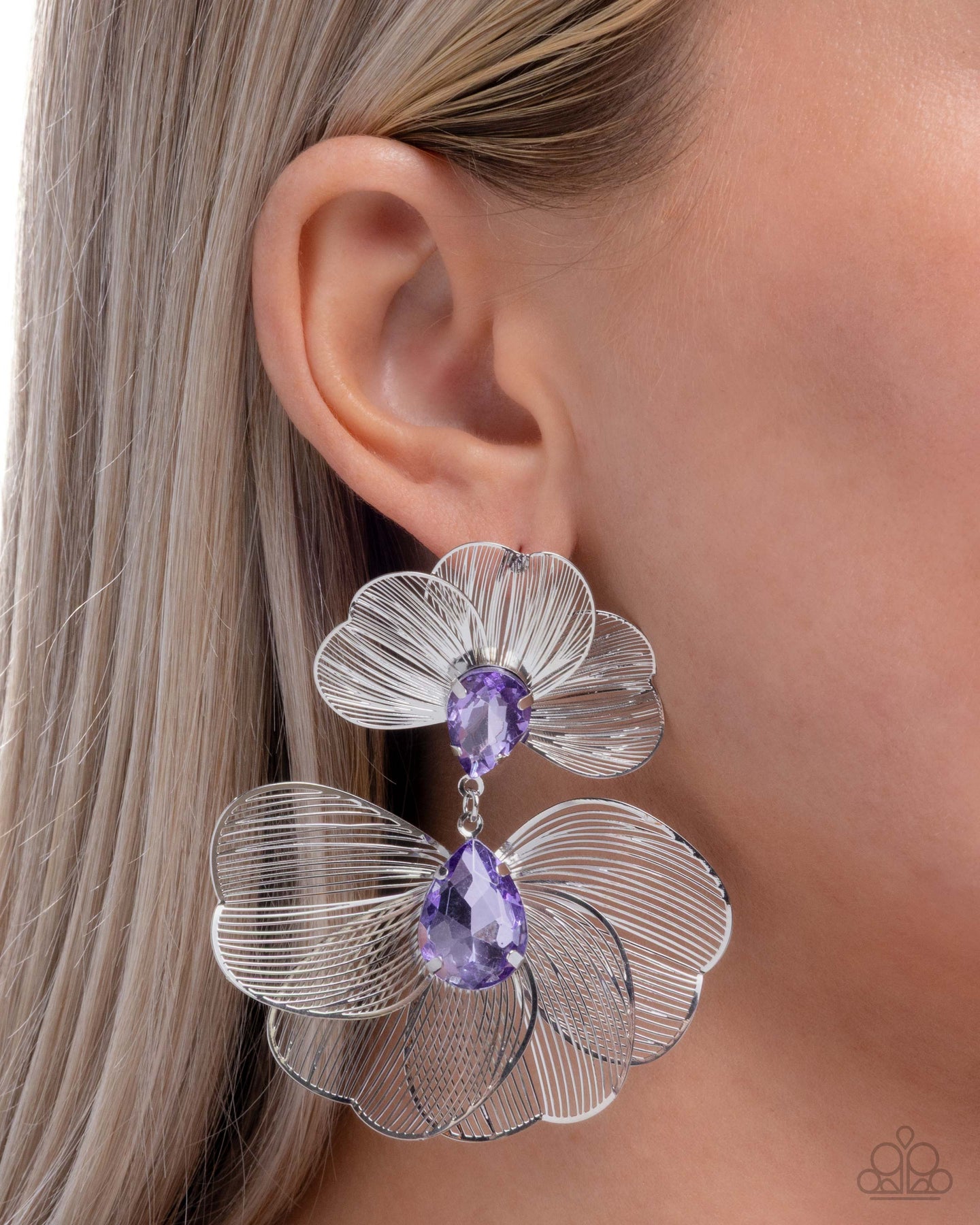 Wiry Wisdom - Purple Gem Silver Flower Post Earrings