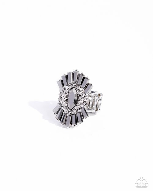 Daringly Deco - Silver Hematite Rhinestone Flare Ring - Paparazzi