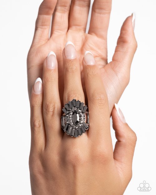 Daringly Deco - Silver Hematite Rhinestone Flare Ring - Paparazzi #P4ED-SVXX-142XX