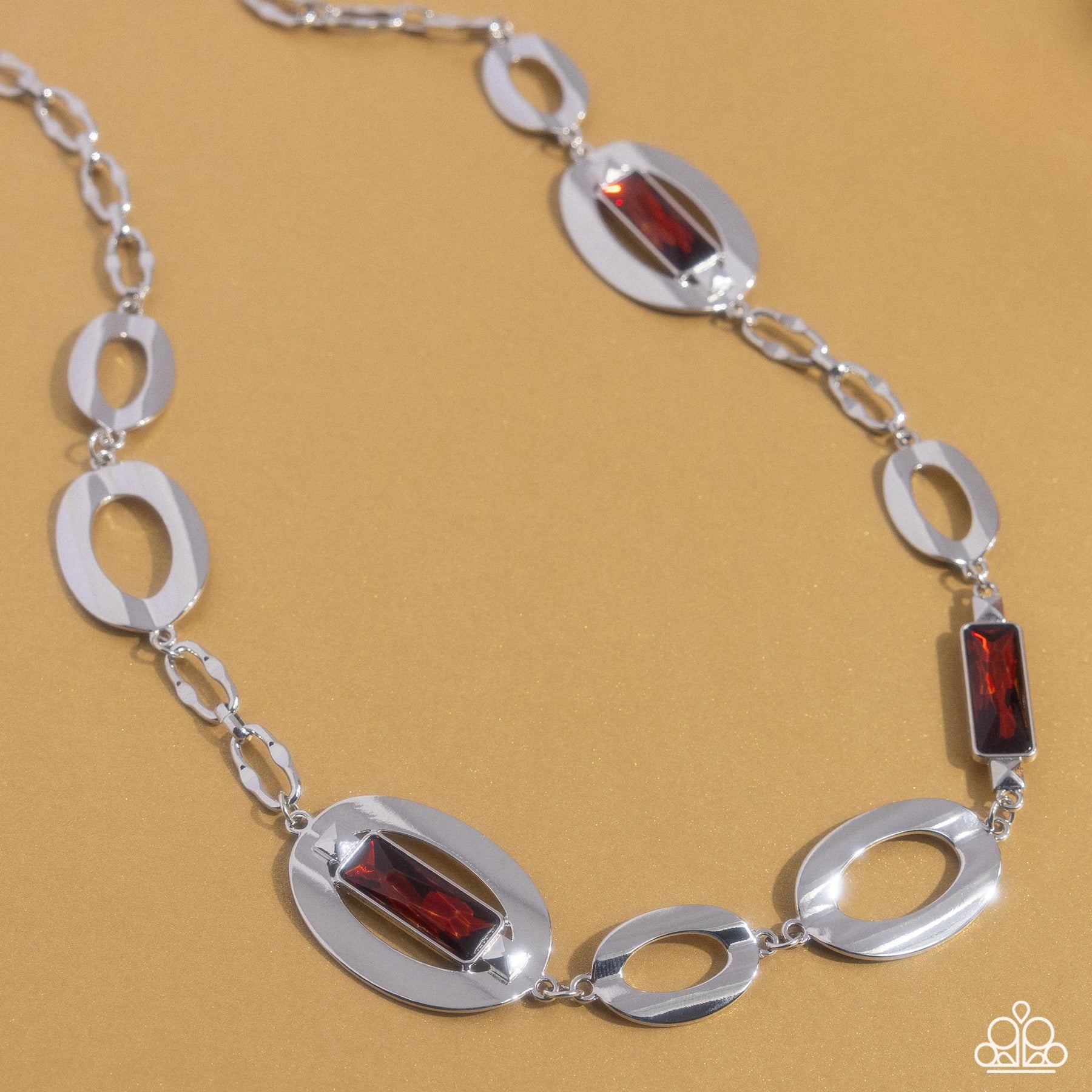 Bedazzled Beetle - Red Gem Silver Bee Firefly Bug Short Necklace - Paparazzi #P2RE-RDXX-288XX