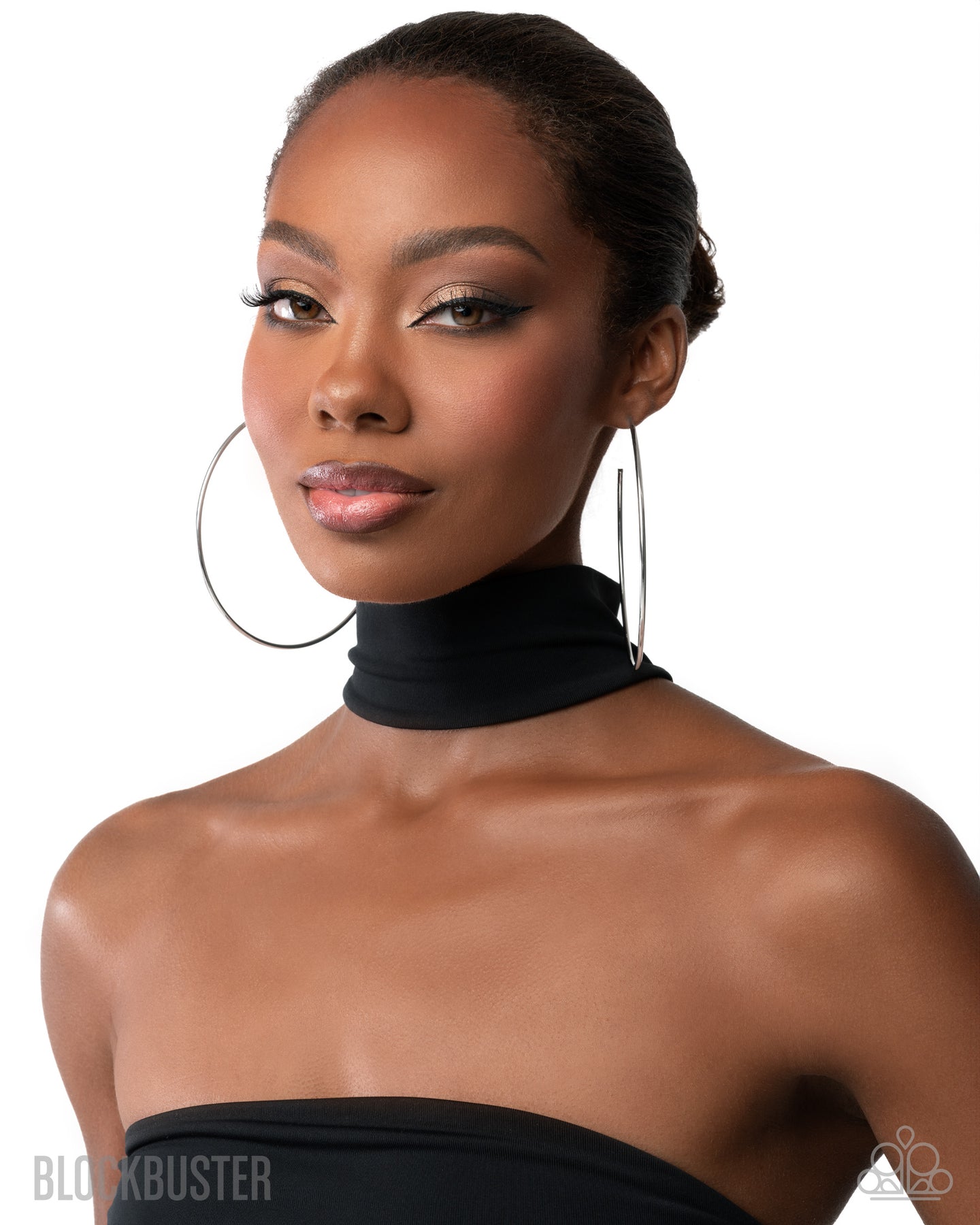 Modular Musings - Black Rhinestone Silver Hoop Earrings - Paparazzi #P5HO-BKXX-292XX