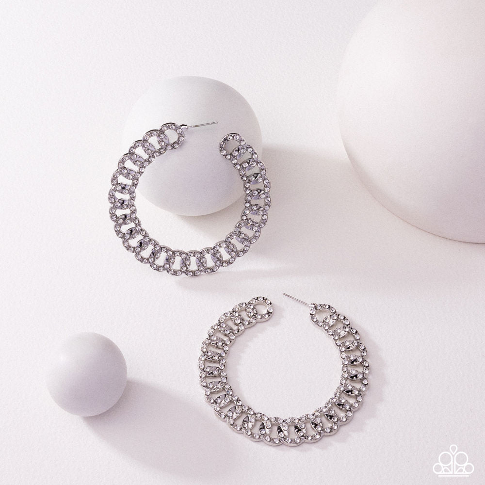 Dotted Daydream - White Pearl Rhinestone Tiny Hoop Earrings - Paparazzi