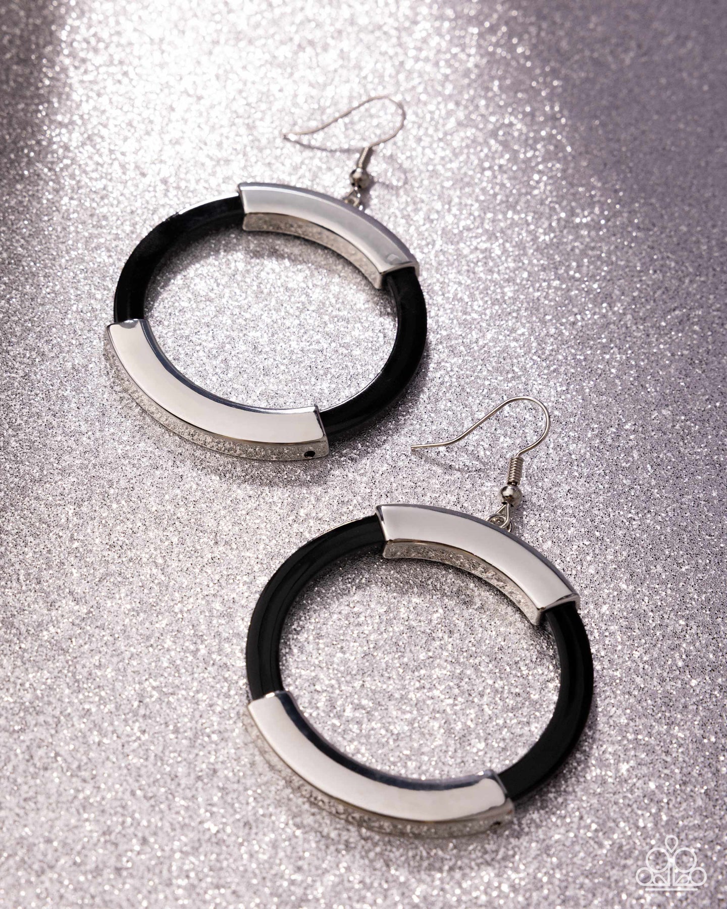Enamored Eiffel Tower - Black Rhinestone Paris Circle Silver Earrings - Paparazzi #P5WH-BKXX-252XX