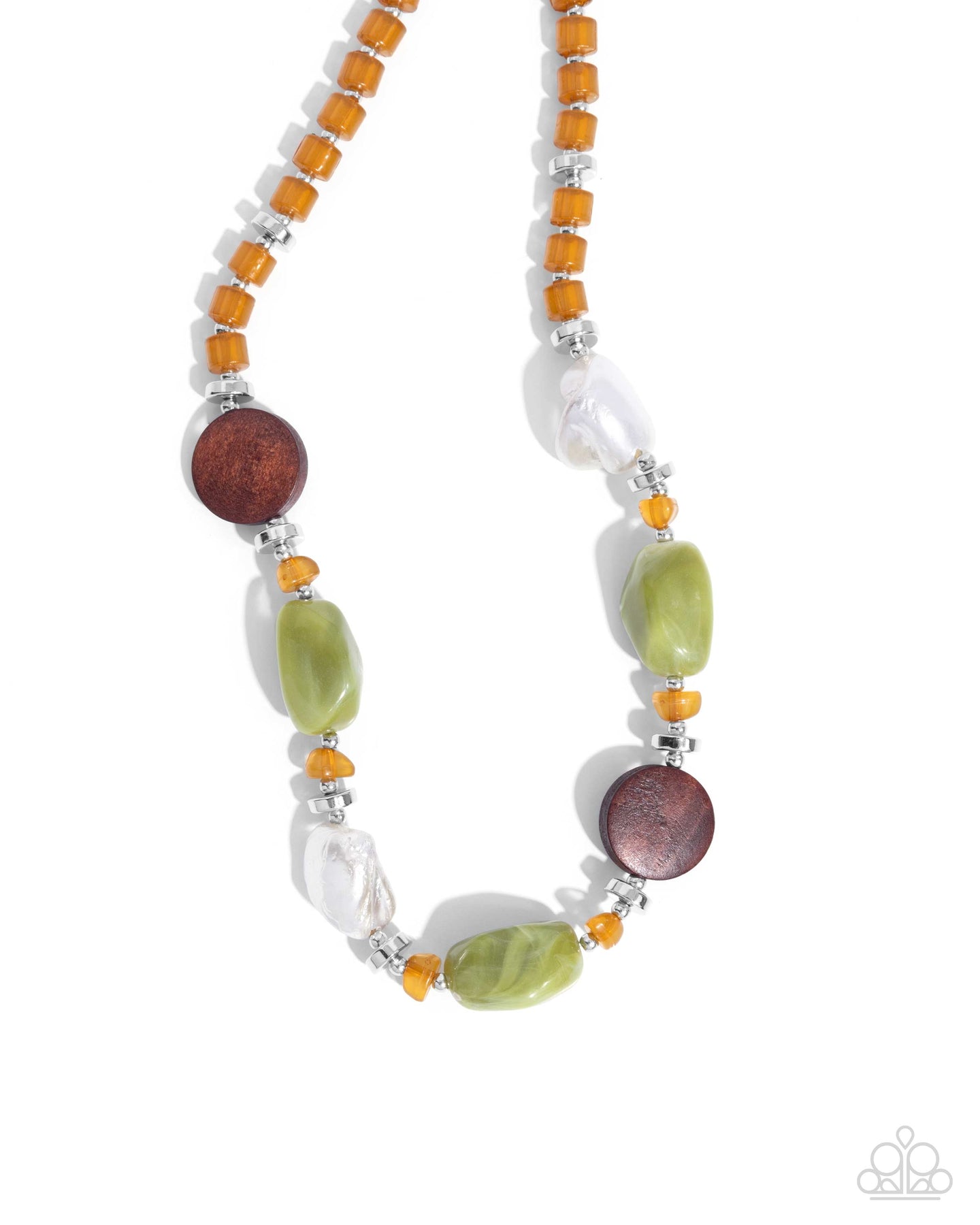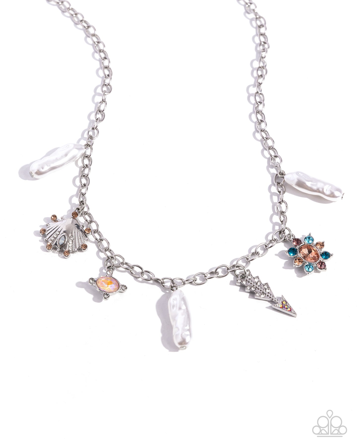 Broaching Beauty - Orange White Pearl Charm Silver Short Necklace - Paparazzi #P2RE-OGXX-160XX