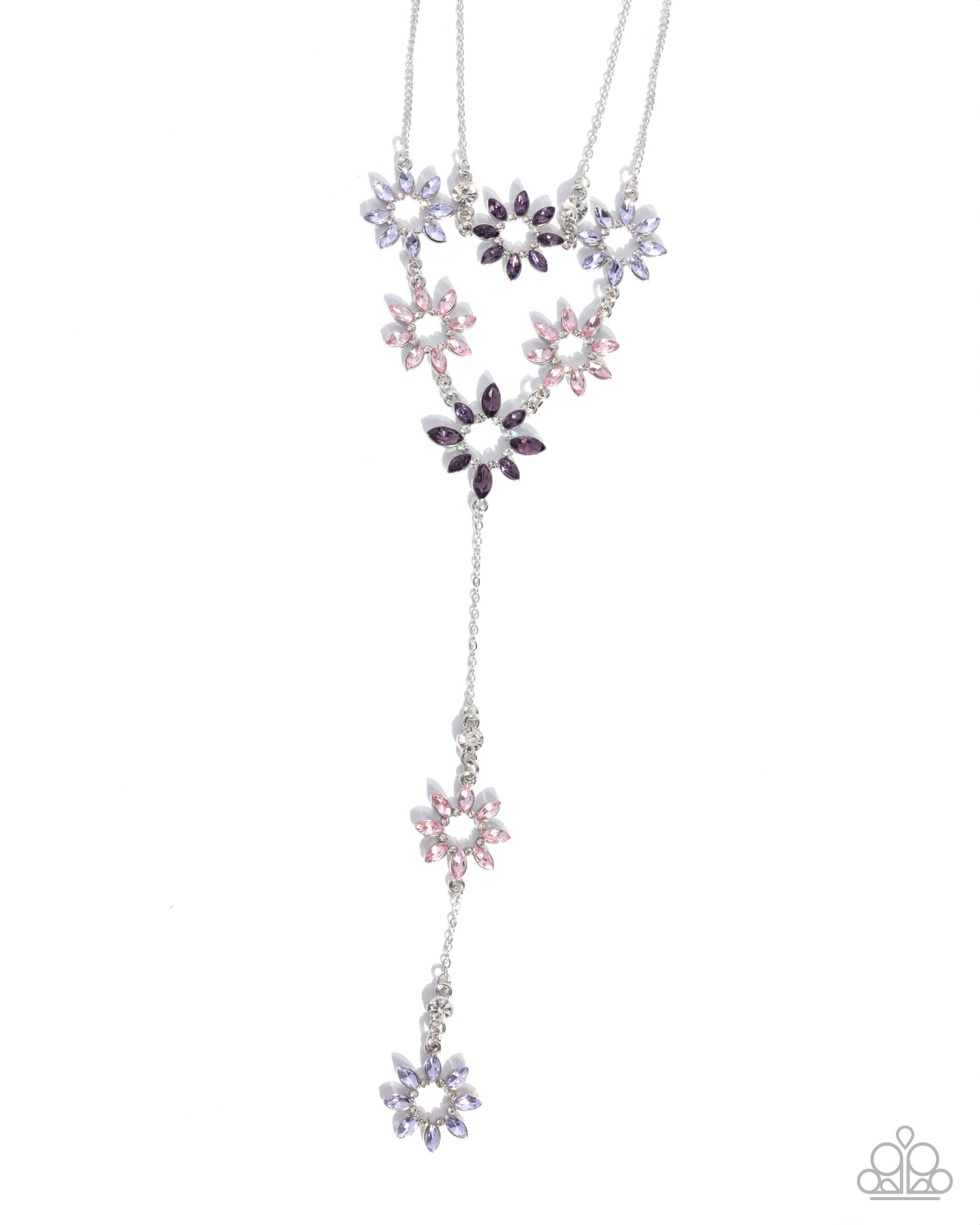 A collection of whimsical charms gather along a classic silver chain, including elongated oval baroque pearls, a light peach iridescent-embellished textured silver arrow, a silver seashell featuring an opalescent marquise-cut gem with a light peach rhinestone petal border, an oval silk topaz gem with a quartet of framing silver studs, a silver flower featuring an oval peach gem center and aquamarine, light peach, blue zircon, and light amethyst rhinestone petals. Features an adjustable clasp closure. Due to its prismatic palette, color may vary.