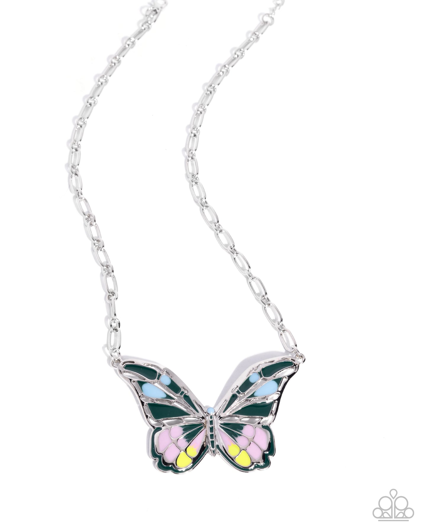 Broaching Beauty - Orange White Pearl Charm Silver Short Necklace - Paparazzi