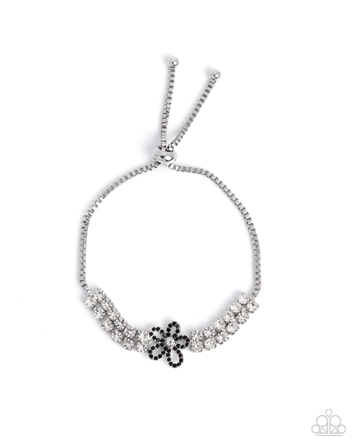 Blooming Breakthrough - Black Rhinestone Flower Silver Slide Bracelet - Paparazzi