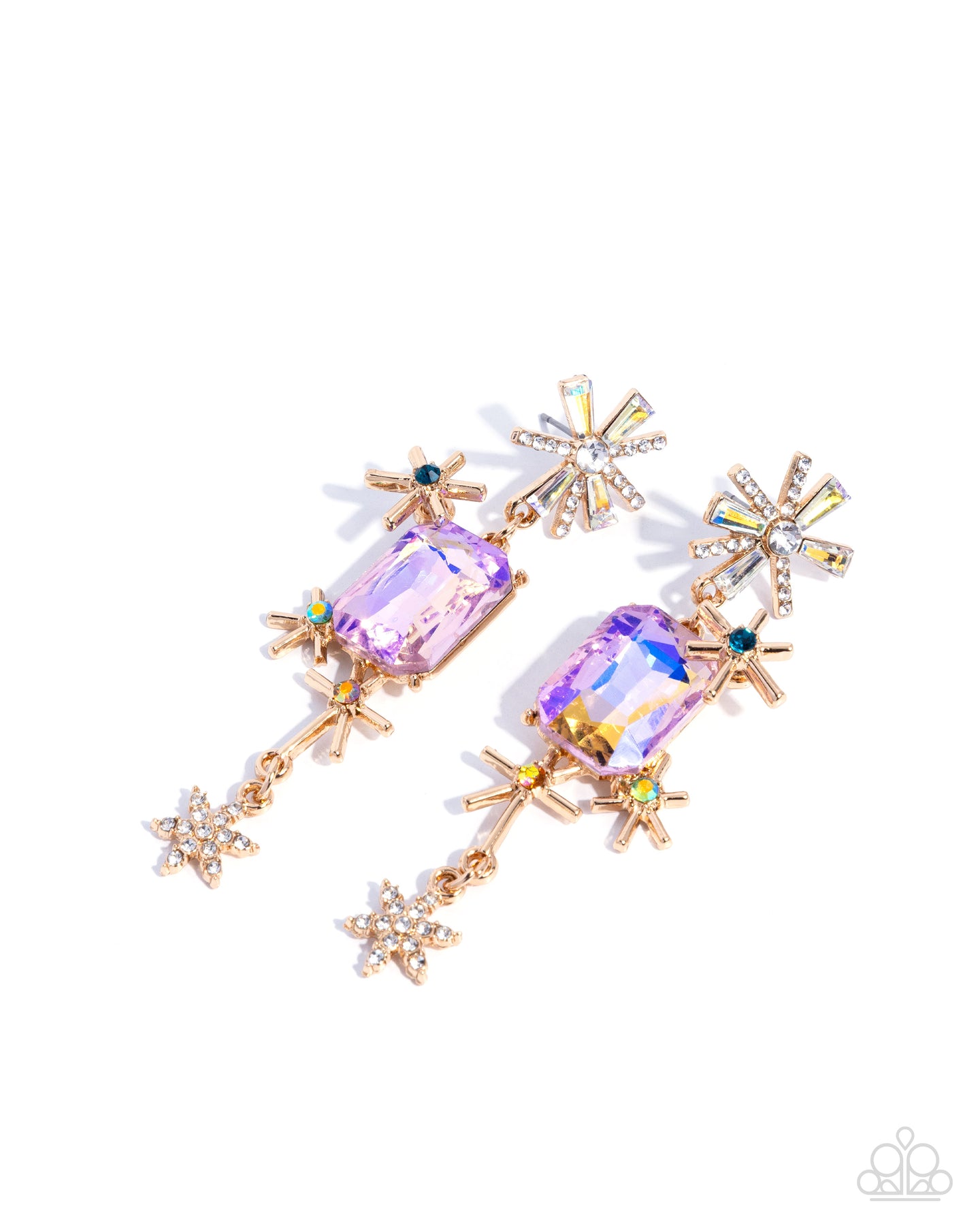 Cosmic Catch - Multi Gem Gold Sunburst Star Post Earrings - Paparazzi #P5PO-MTXX-206XX