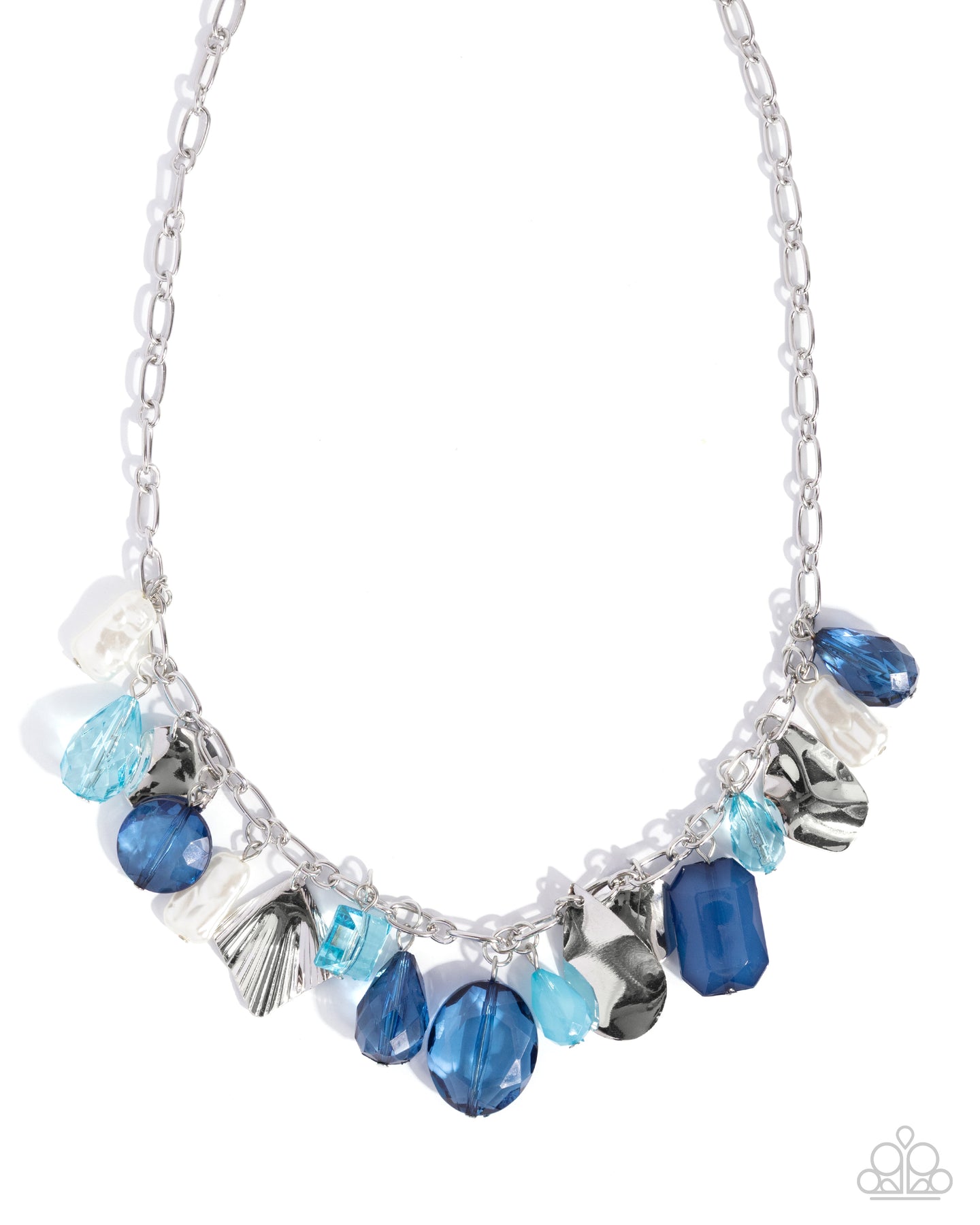 Broaching Beauty - Blue Gem Arrow Pearl Charm Silver Short Necklace - Paparazzi #P2RE-BLXX-448XX