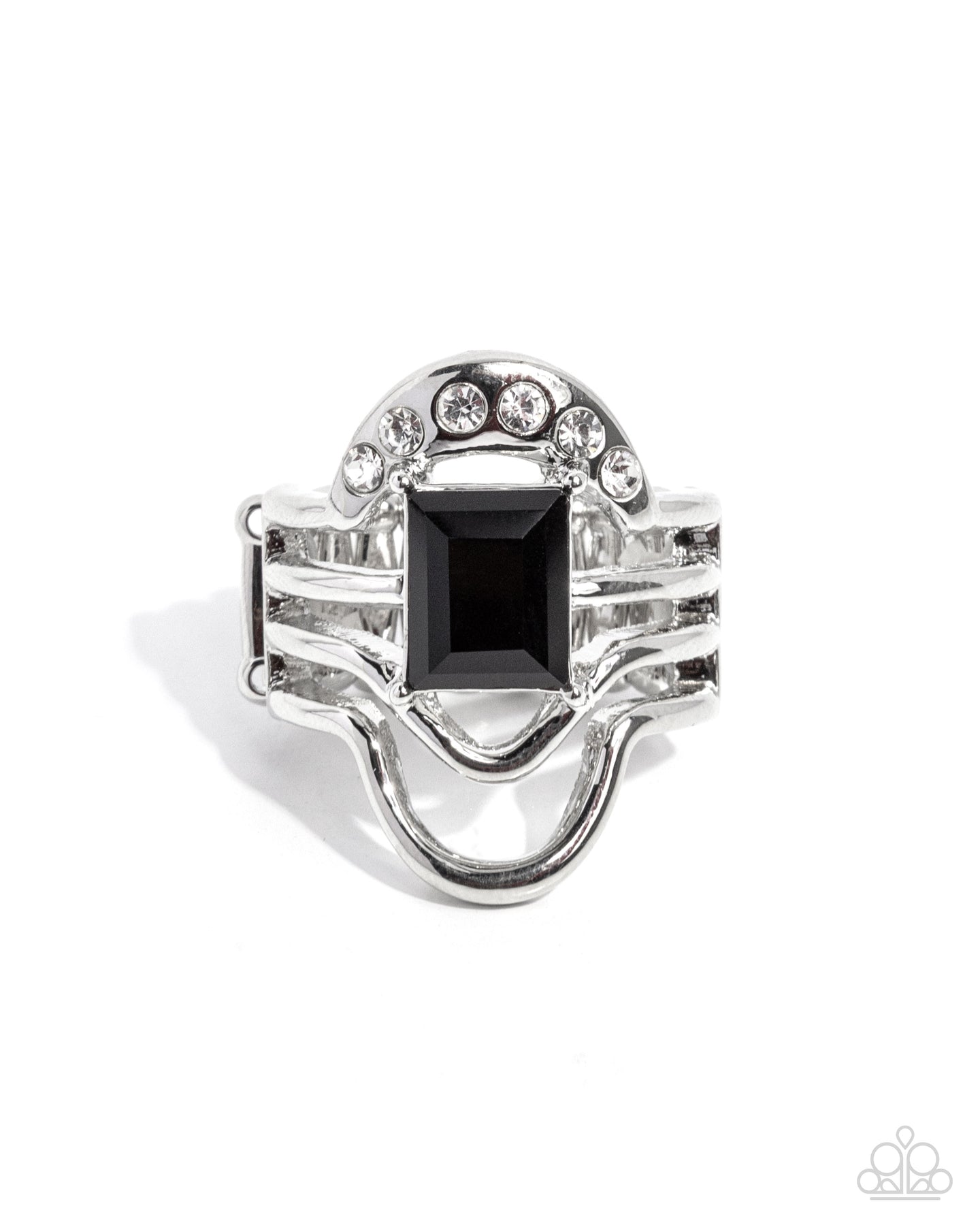Abstract Action - Black Gem Silver Ring - Paparazzi