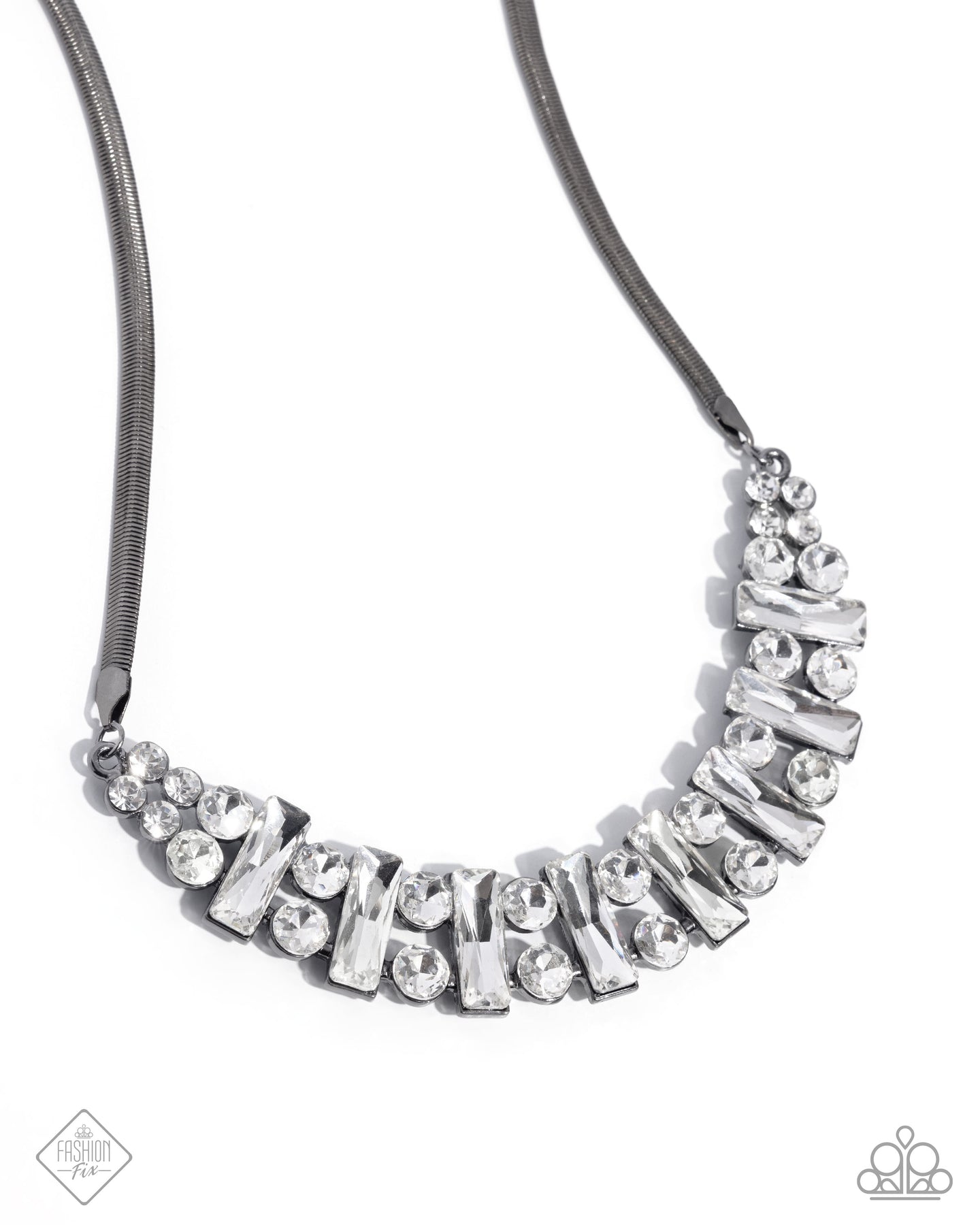 Adorably Assertive - Black Gunmetal White Gem Short Necklace - Paparazzi - Fashion Fix April 2025