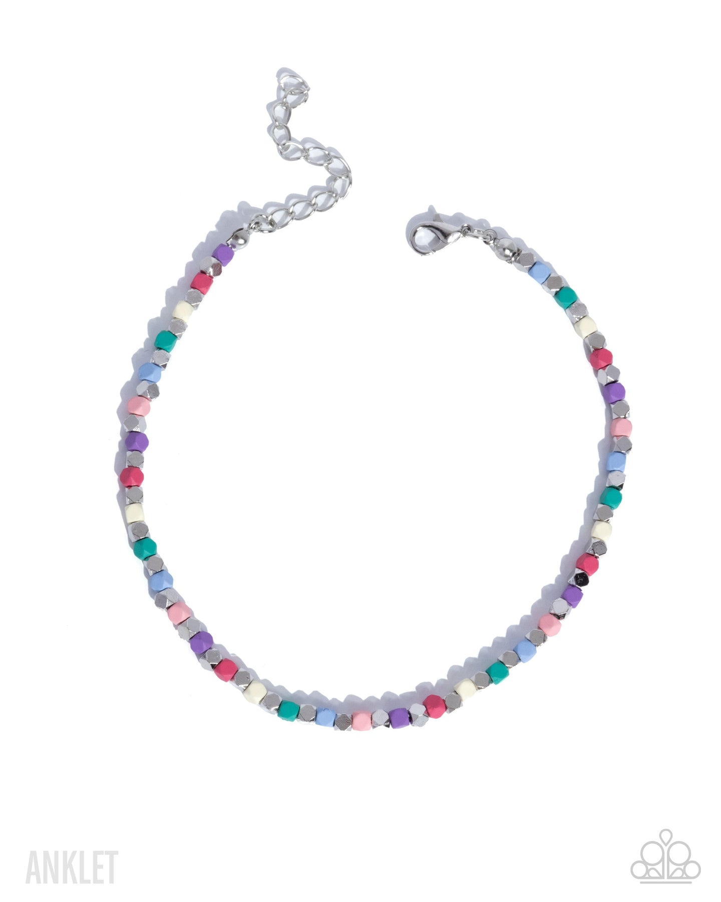 Exquisitely Eclectic - Multi Color Bead Silver Anklet - Paparazzi #P9AN-MTXX-084XX