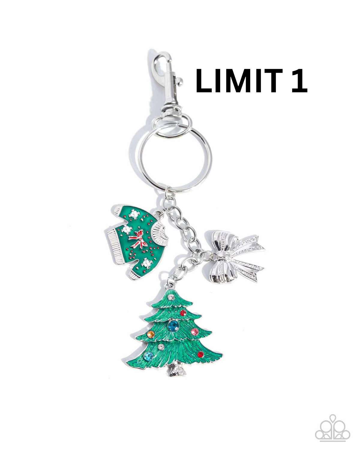 LIMIT 1 - Holiday Memories - Multi Green Tree Sweater Holiday Silver Bag Charm - Paparazzi