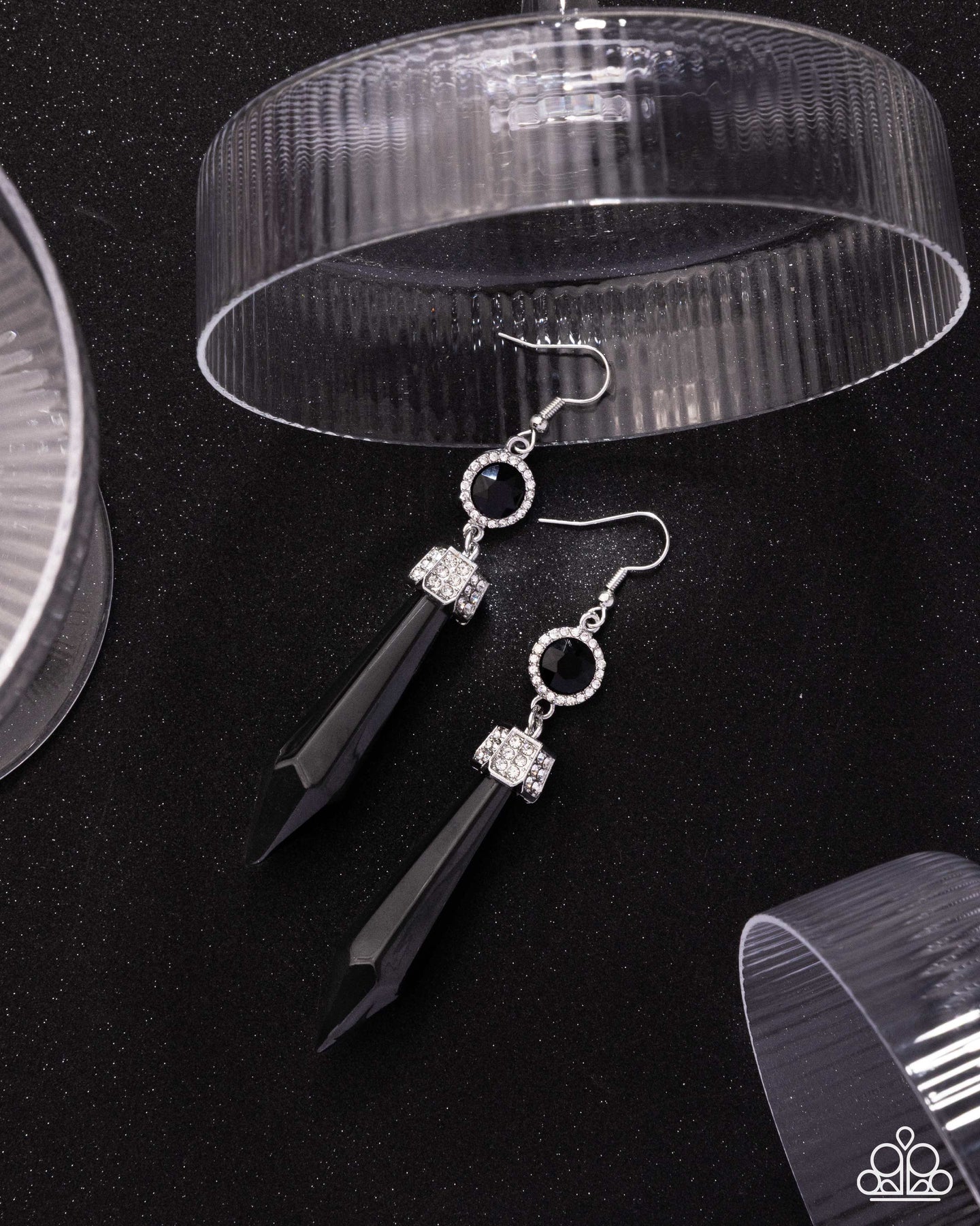 Palatial Pizzazz - Black Gem White Rhinestone Earrings - Paparazzi #P5RE-BKXX-488XX