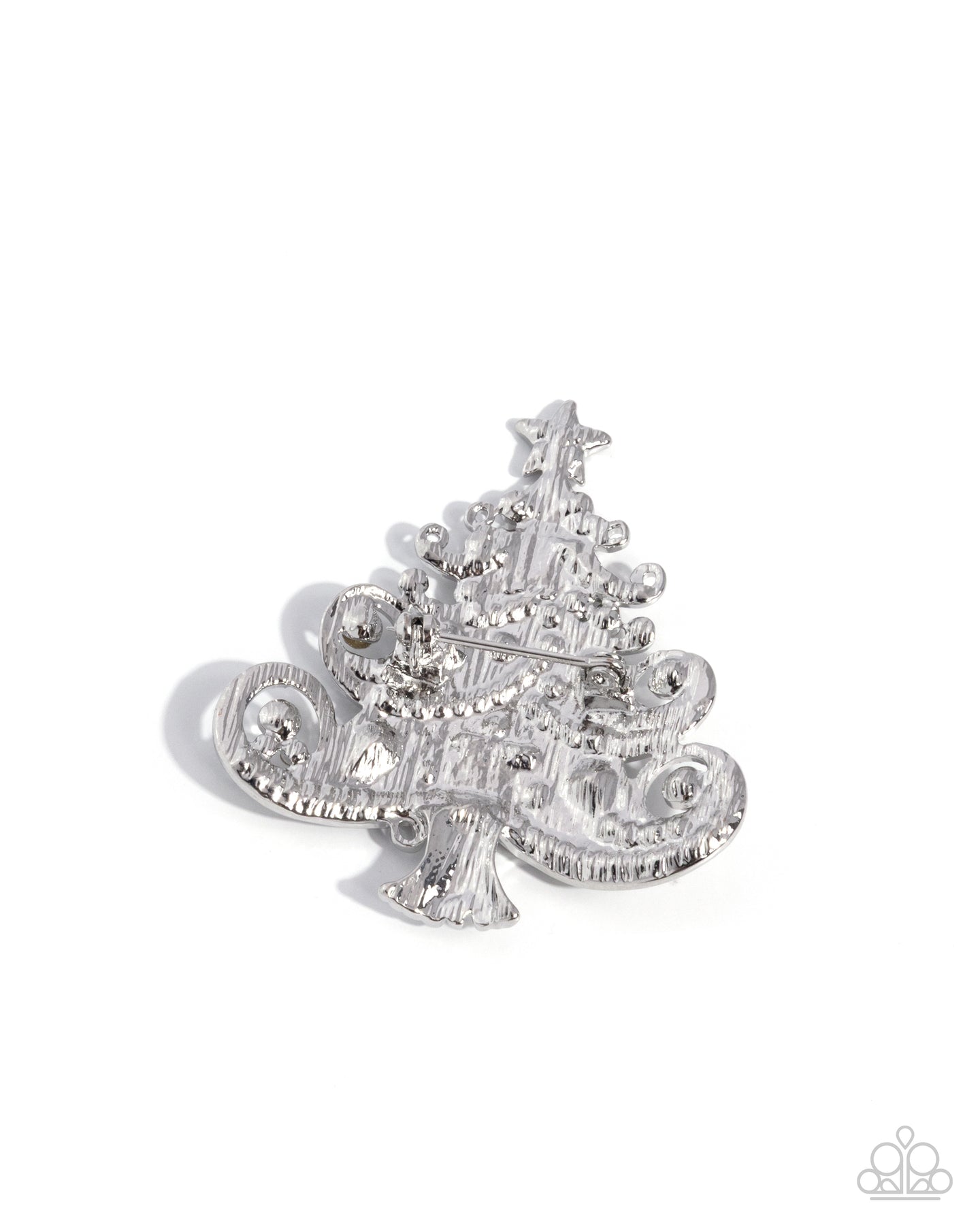 Twinkling Tannenbaum - Green Gem Silver Christmas Tree Holiday Brooch - Paparazzi #P7BR-GRXX-025XX