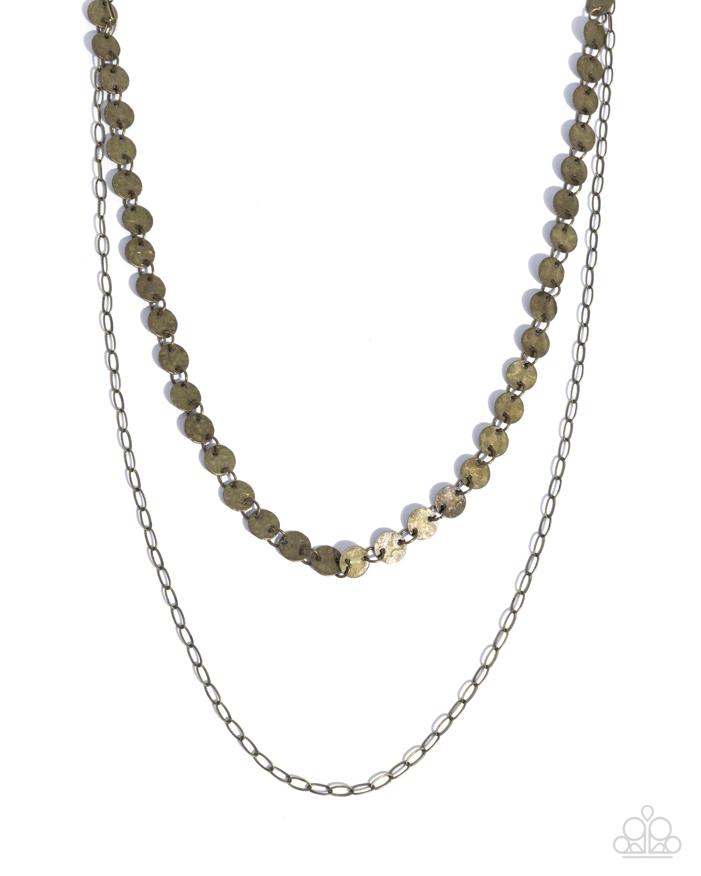 Call of the MILD - Brass Fringe Turquoise Tiger's Eye White Stone Short Necklace - Paparazzi