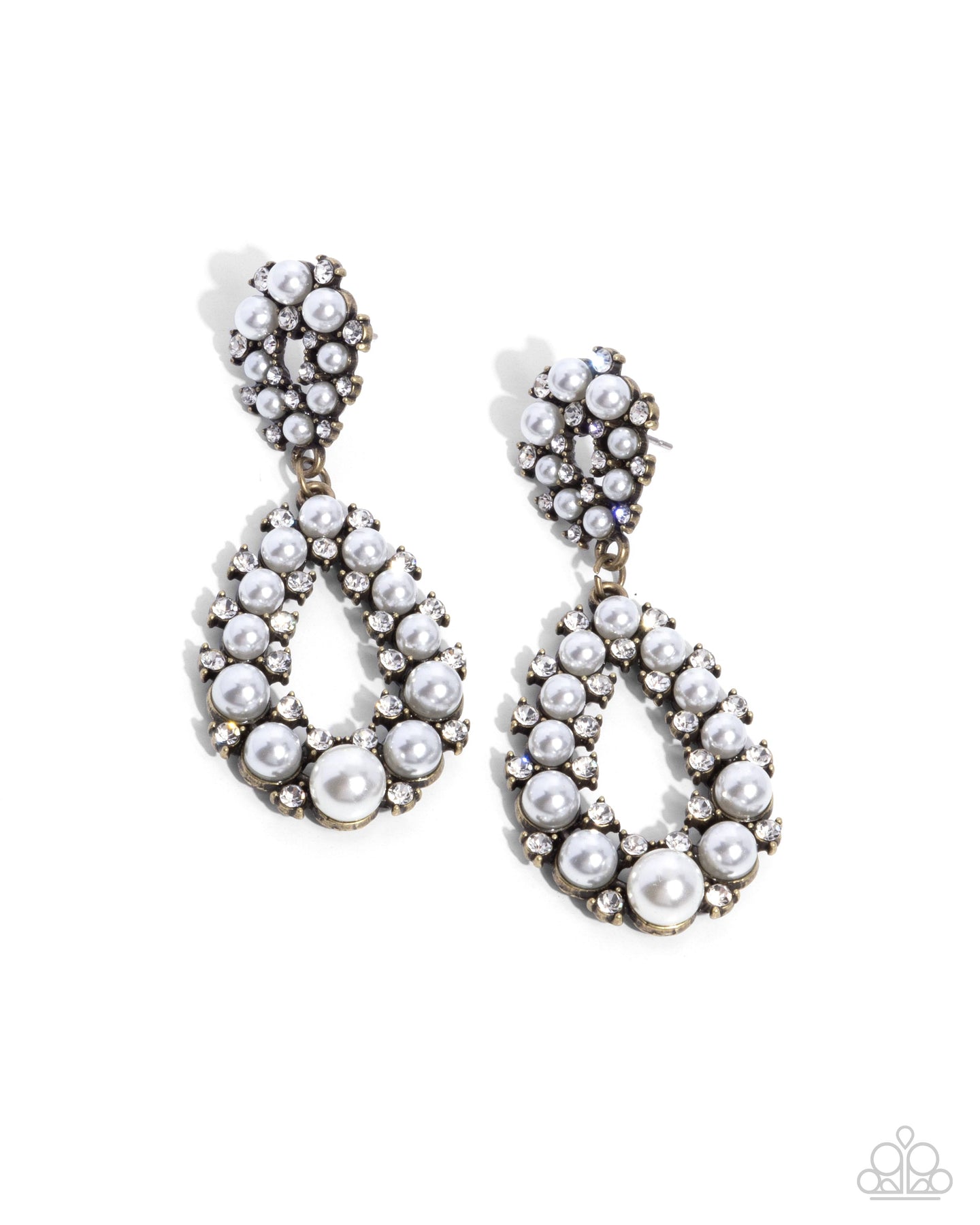Dapper Debut - Brass White Pearl Post Earrings - Paparazzi