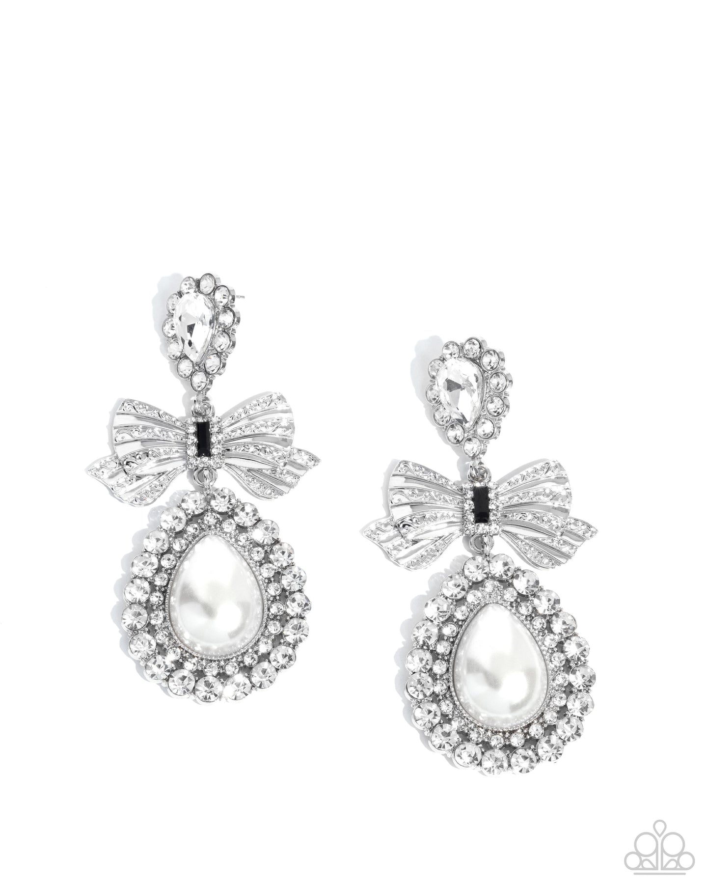 Alluring Aesthetic - White Rhinestone Pearl Silver Post Earrings - Paparazzi #P5PO-WTXX-487XX