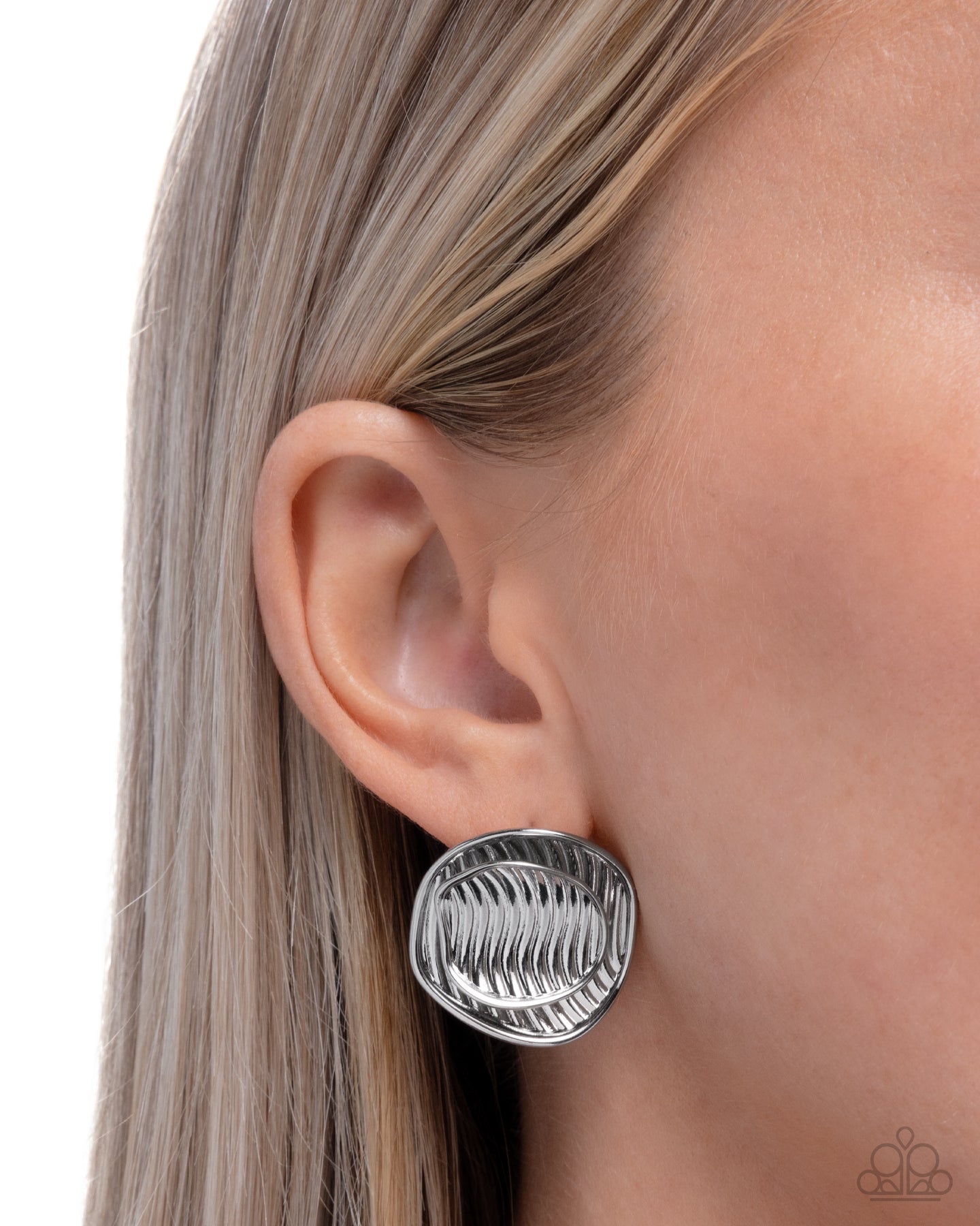 Oval Attitude - Silver Hammered Post Earrings - Paparazzi