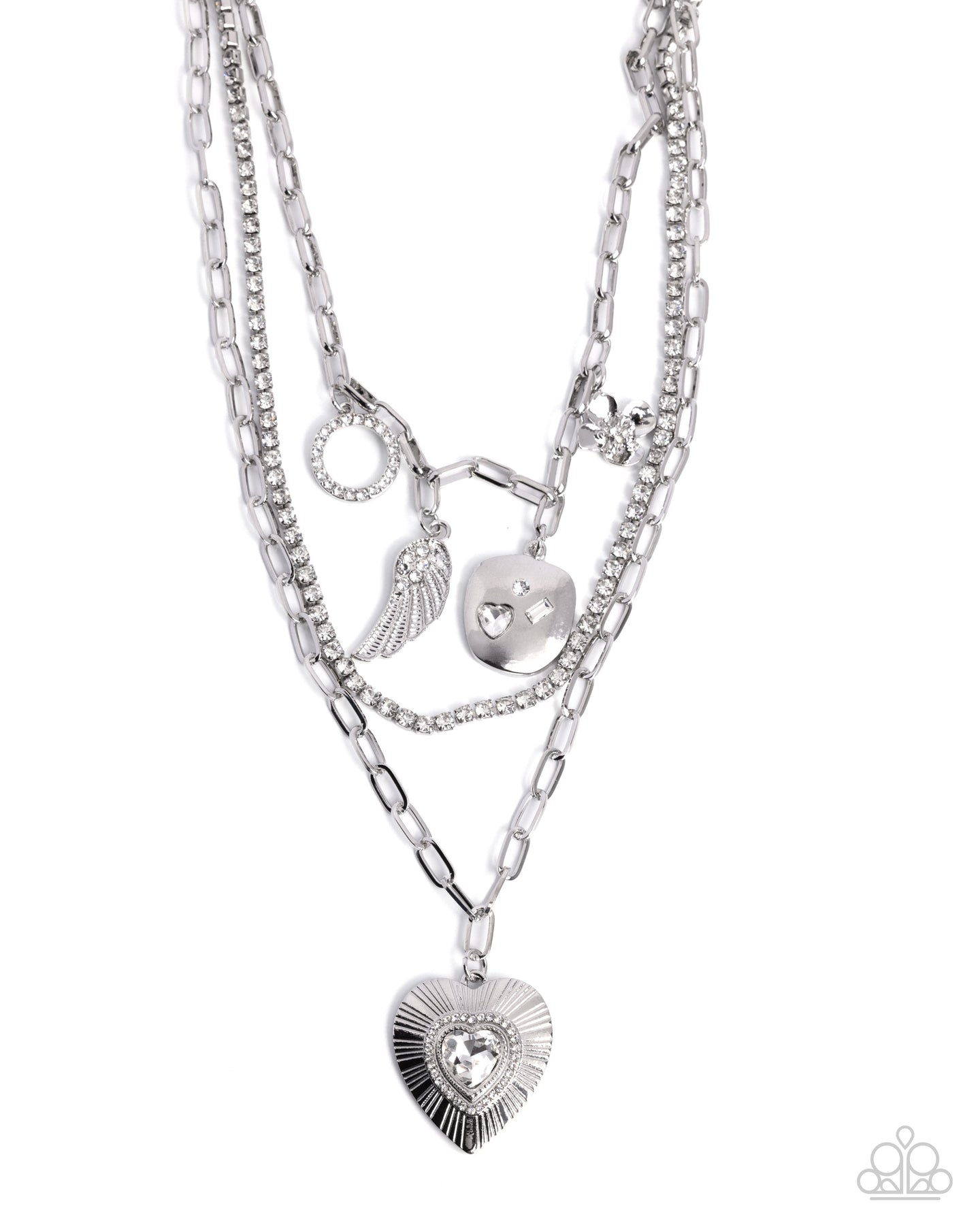 Angelic Ambition - White Rhinestone Angel Wing Heart Charm Silver Short Necklace - Paparazzi