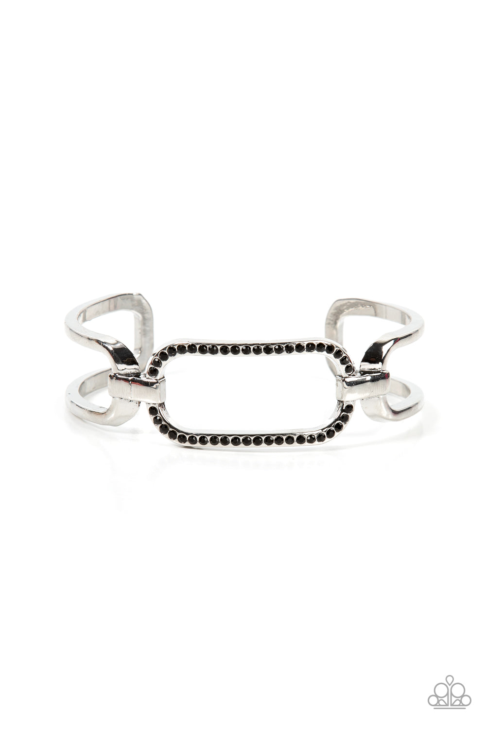Civic Chic - Black Rhinestone Silver Cuff Bracelet - Paparazzi