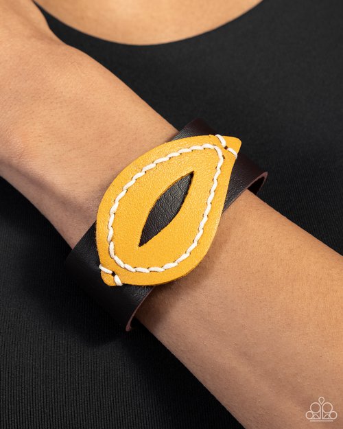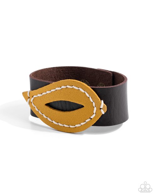 Harvest Bound - Yellow Brown Leather Wrap Bracelet - Paparazzi #P9UR-YWXX-091XX