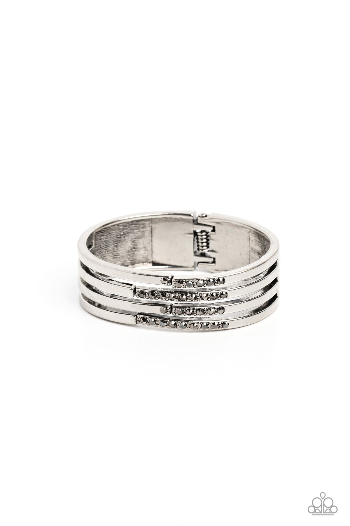 Labyrinth Lure - Silver Hematite Rhinestone Hinged Bracelet - Paparazzi