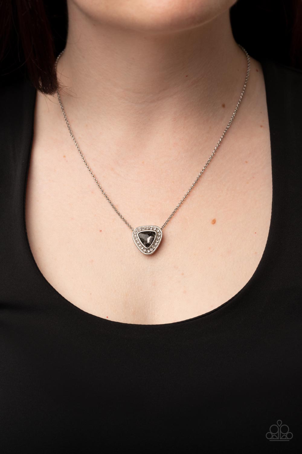 The Whole Package - Silver Smoky Triangle Gem Necklace - Paparazzi #P2DA-SVXX-275XX