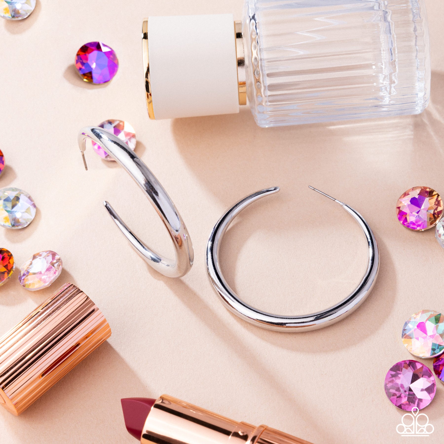 Sleek Selvage - Silver Hoop Earrings - Paparazzi #P5HO-SVXX-457XX