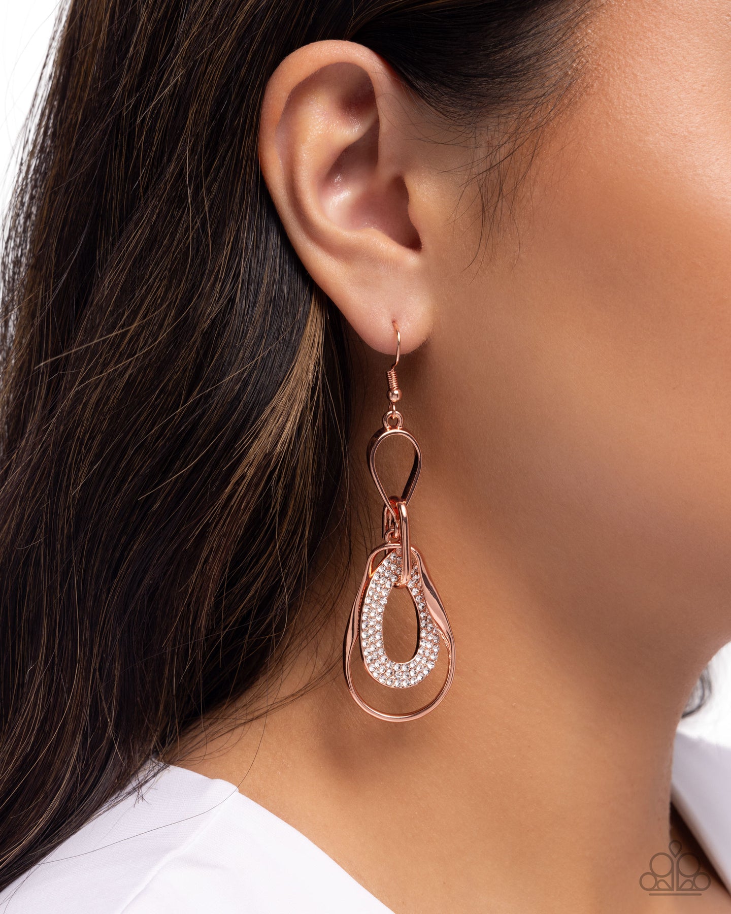 Teardrop Triumph - Copper Rhinestone Earrings - Paparazzi